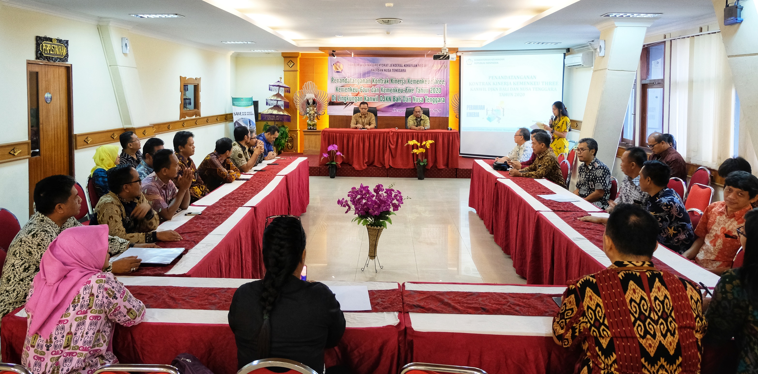 Denpasar– Jumat (31/1) Suasana Kantor Wilayah Direktorat Jenderal Kekayaan Negara (Kanwil DJKN Balinusra) tampak lebih ramai daripada biasanya. Seluruh pegawai berkumpul untuk menandatangani Kontrak Kinerja (Kokin) Kemenkeu Three, Four, dan Five Tahun 2020. Bertempat di aula lantai 3 Kanwil DJKN Balinusra, Jalan Dr. Kusuma Atmaja, Denpasar, Bali, kegiatan rutin yang biasa dilaksanakan pada awal tahun ini merupakan kewajiban bagi seluruh pegawai.