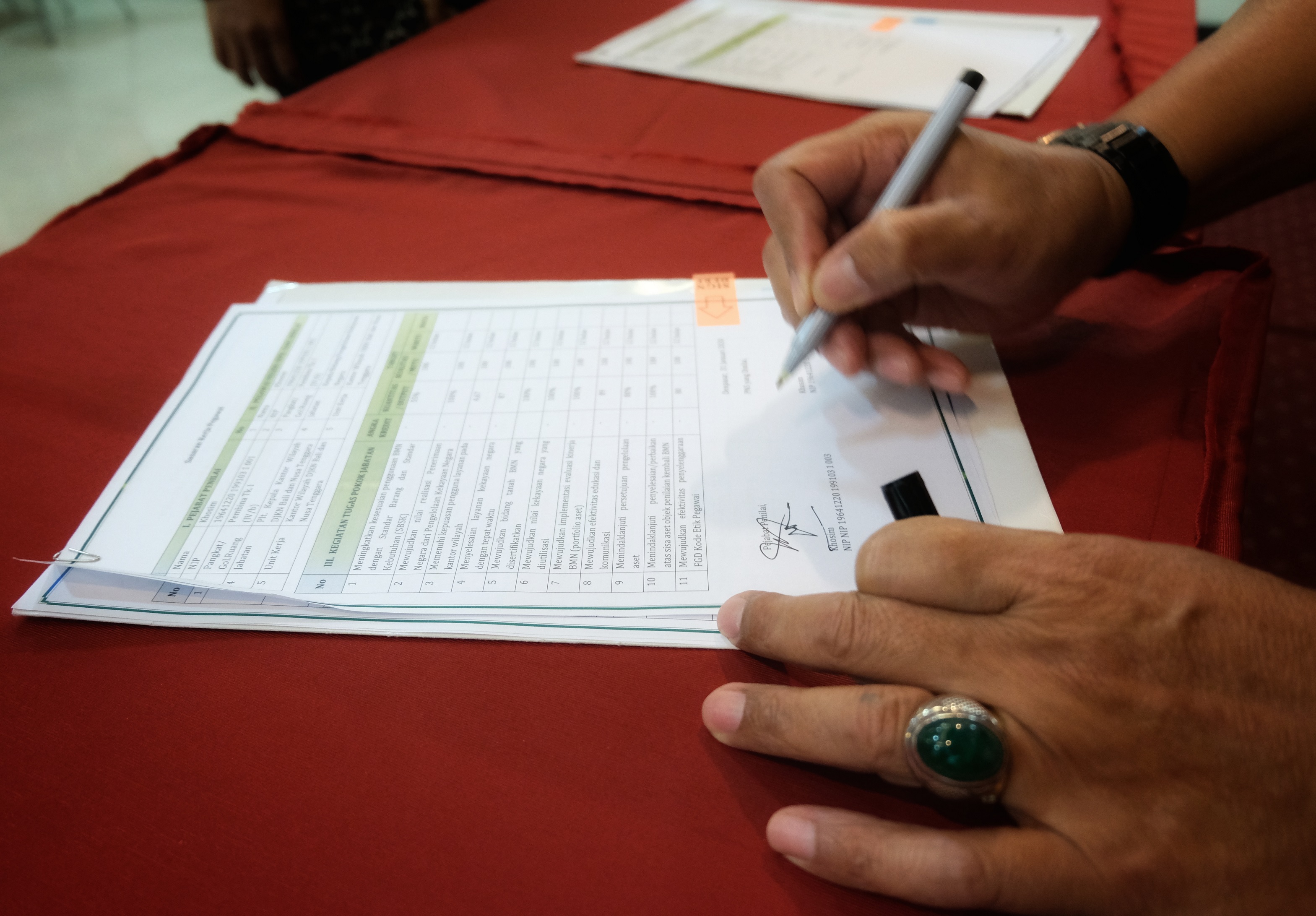 Acara dilanjutkan dengan Penandatanganan Kokin, dimulai dari para Kepala Bidang/Kepala Bagian Umum kemudian diikuti oleh para Kepala KPKNL di wilayah Balinusra kemudian para Kepala Seksi dan pelaksana pada Kanwil. (Penulis/Foto: fos)