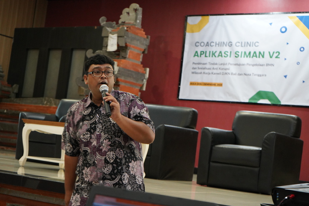 Materi inti dari acara disampaikan oleh tiga narasumber antara lain, Koni Setiawan dan Angga Bayu Setyawan, Pelaksana pada Bidang Pengelolaan Kekayaan Negara Kanwil DJKN Balinusra, yang masing-masing menyampaikan materi tentang Registrasi User SIMAN v2, serta Master Aset dan Rencana Kebutuhan Barang Milik Negara (RKBMN). Sedangkan materi ke-tiga mengenai Proses Pengelolaan BMN pada SIMAN v2 disampaikankan oleh Rizky Maulana, Pelaksana pada KPKNL Singaraja.