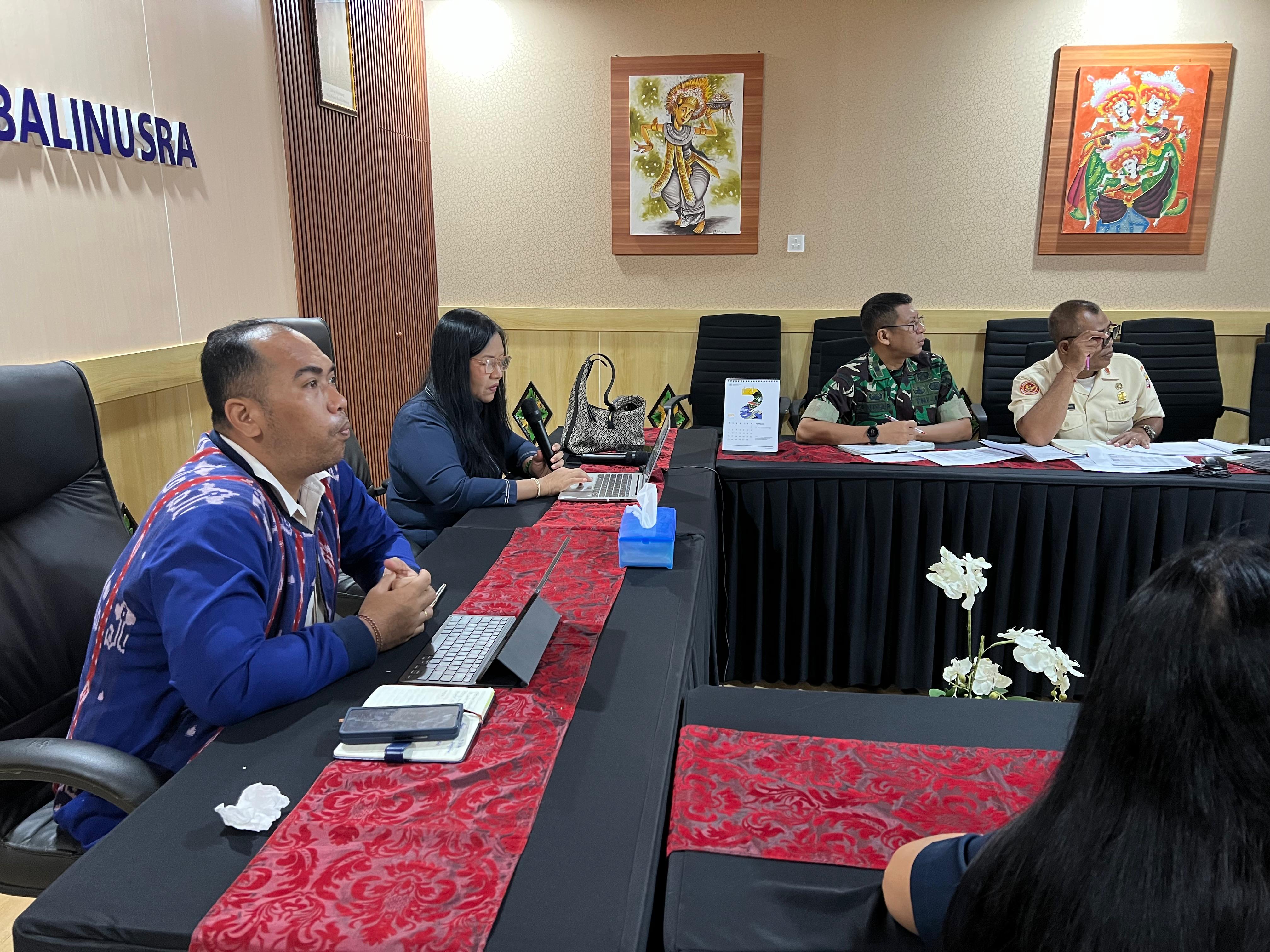 Rapat koordinasi tersebut dihadiri langsung oleh Kepala Bidang Pengelolaan Kekayaan Negara (PKN) Kanwil DJKN Bali dan Nusa Tenggara Desak Putu Jenny di dampingi Kepala Seksi Pengelolaan Kekayaan Negara I Agus Dardiri dan Kepala Seksi Pengelolaan Kekayaan Negara II Pravilla Arwan Saputra, Kepala Bidang Penetapan Hak dan Pendaftaran (PHP) Kantor Wilayah Badan Pertanahan Nasional Provinsi Nusa Tenggara Timur Eka Arya Wirata, serta perwakilan dari Denzibang Udayana, sedangkan turut hadir secara daring perwakilan dari KPKNL Kupang dan KPKNL Denpasar.