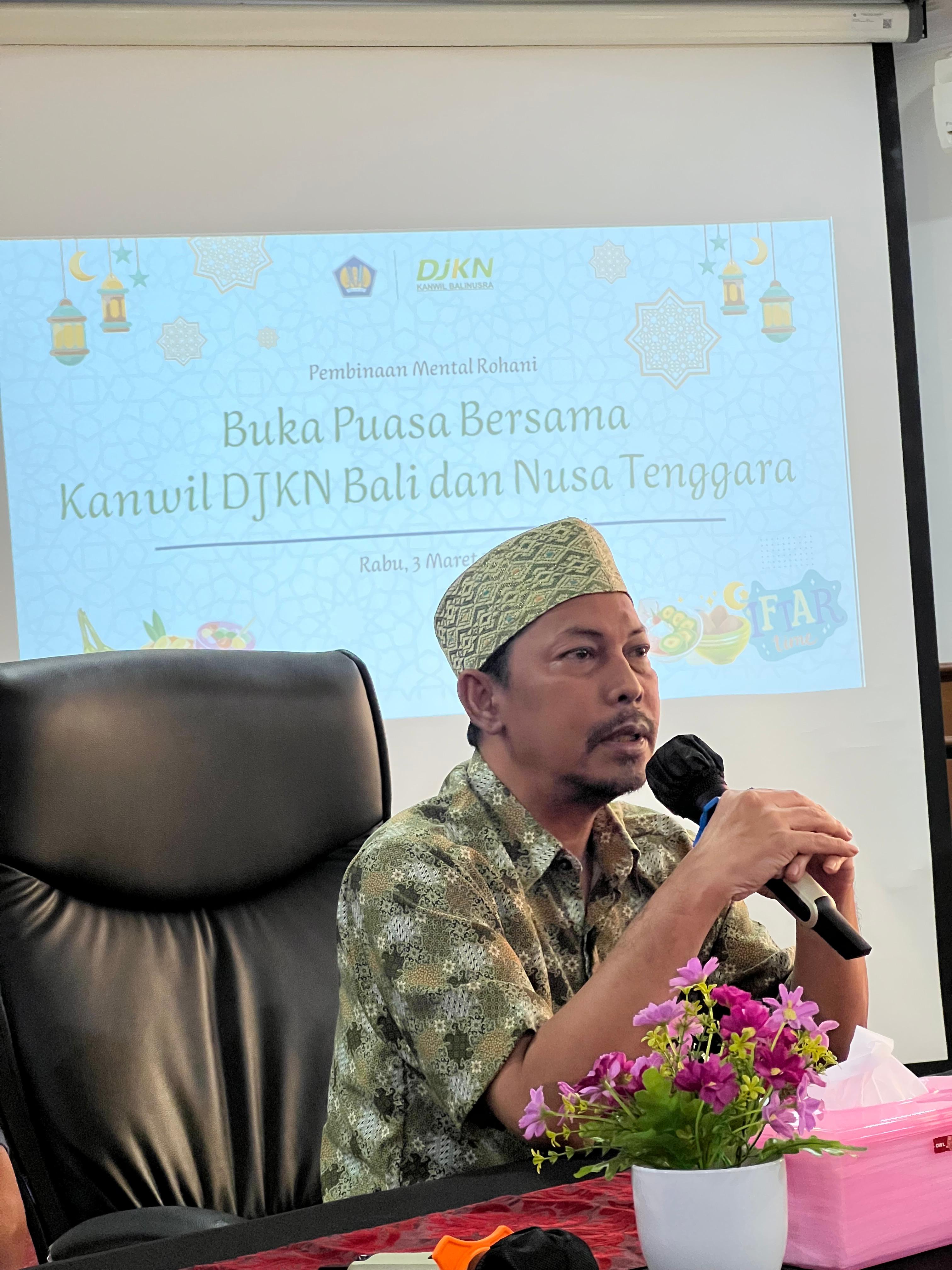 Acara berlangsung dalam suasana hangat dan penuh kekeluargaan. Dalam sambutannya, Kepala Kanwil DJKN Bali dan Nusa Tenggara Sudarsono menyampaikan bahwa bulan Ramadan merupakan momentum yang sangat baik untuk meningkatkan kualitas diri, baik secara spiritual maupun dalam pelaksanaan tugas sebagai pengelola kekayaan negara. Beliau menganjurkan agar seluruh pegawai Muslim dapat semakin memperbanyak ibadah di bulan suci ini, tidak hanya menjalankan ibadah rutin, tetapi juga menambah amalan-amalan sunnah sebagai bentuk peningkatan keimanan dan ketakwaan.