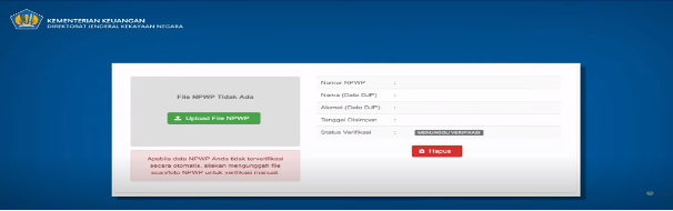 7. Apabila data NPWP tidak terverifikasi secara otomatis unggah file scan atau foto NPWP mu untuk verifikasi manual