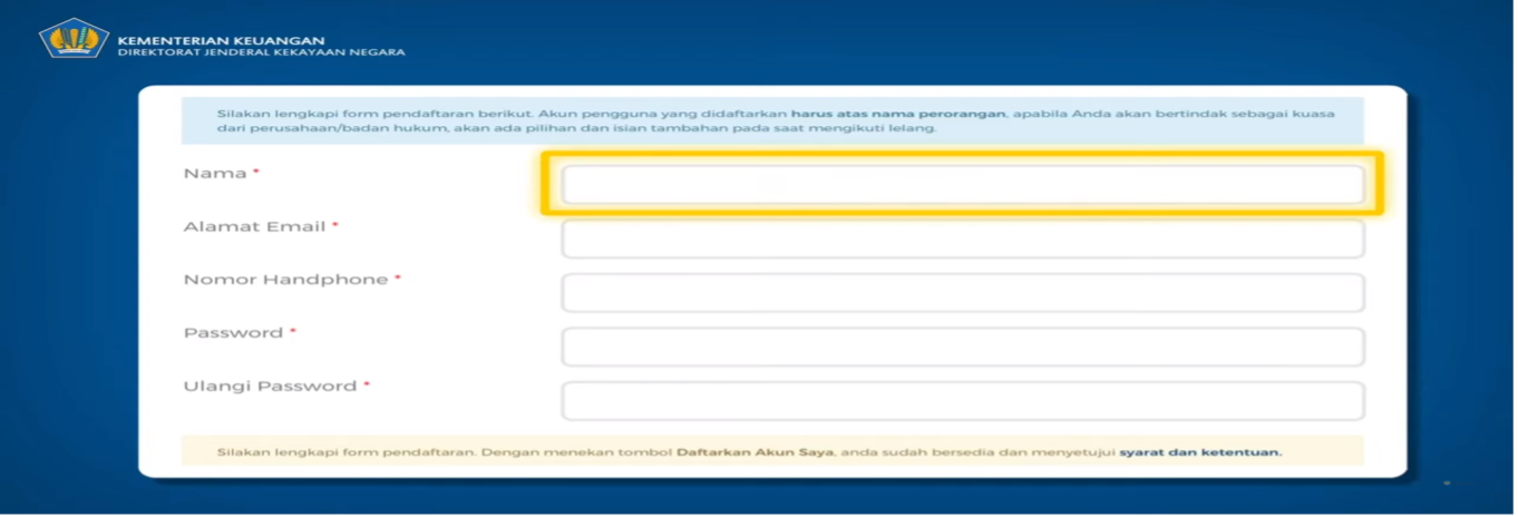 3. Akan muncul seperti gambar diatas kemudian isi Kolom nama lengkap (sesuai nama yang tercantum pada kartu tanda penduduk).