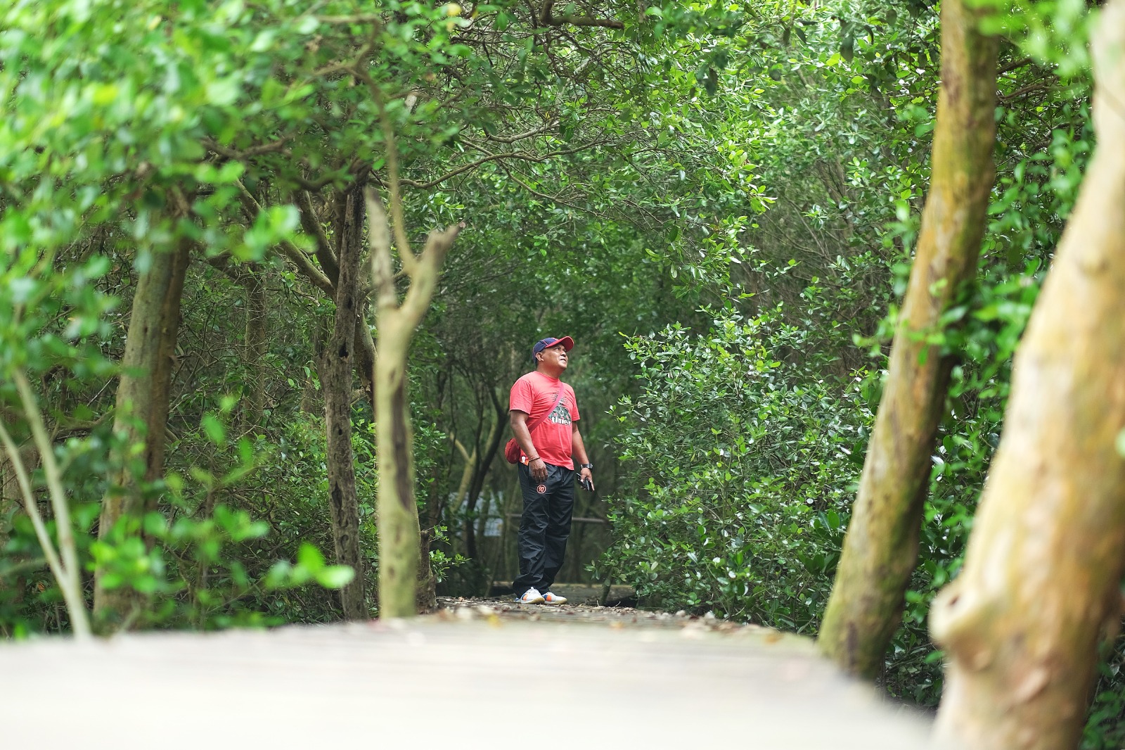 aktivitas nelayan. Meniti jalan setapak yang terbuat dari beton sambil