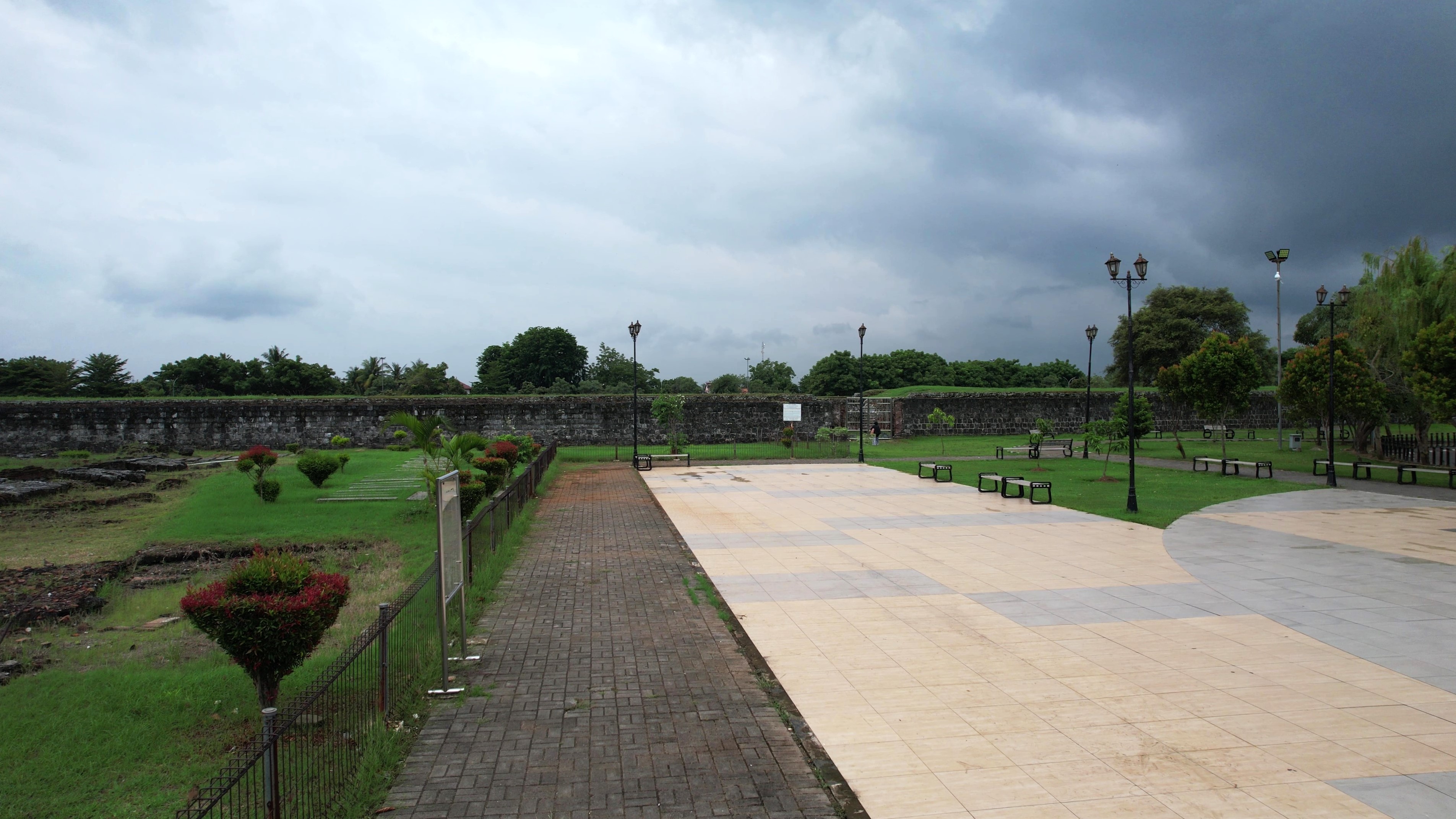 yang dikelilingi benteng/pagar tembok dari susunan batu bata. Begitu luas