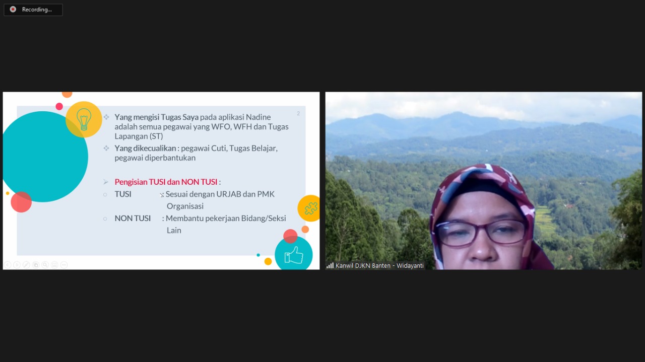pemaparan mengenai Aplikasi Nadine yang disampaikan oleh Widayanti dan kegiatan