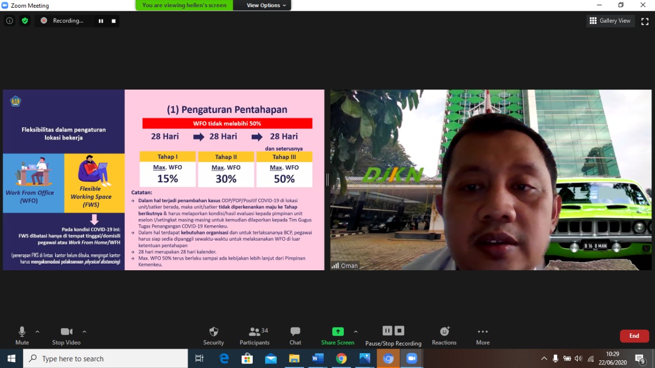 selanjutnya atas COVID-19, pelaksanaan sistem kerja di lingkungan Kemenkeu
