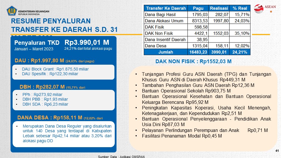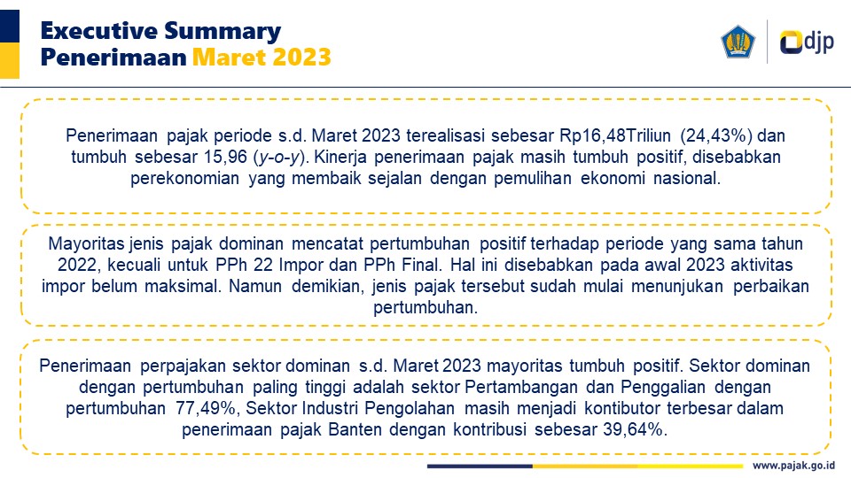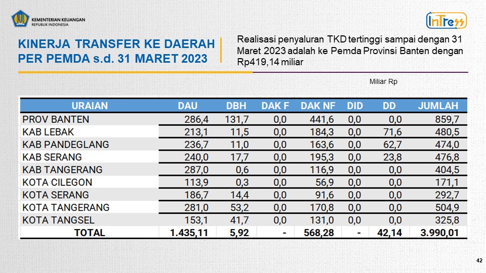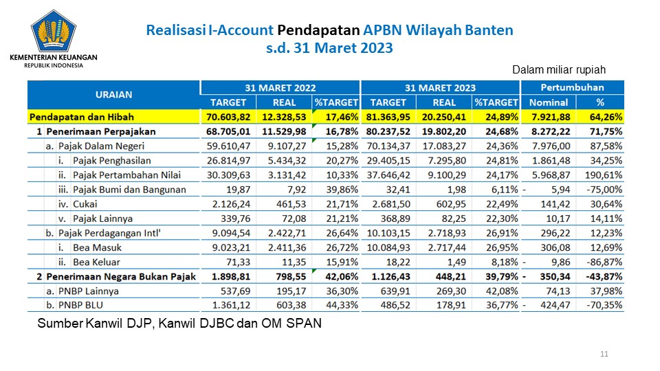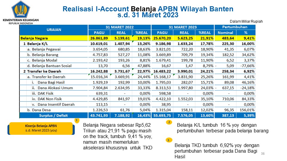 Siaran Pers Perwakilan Kementerian Keuangan Provinsi Banten APBN Kita Regional Banten Per 31 Maret 2023