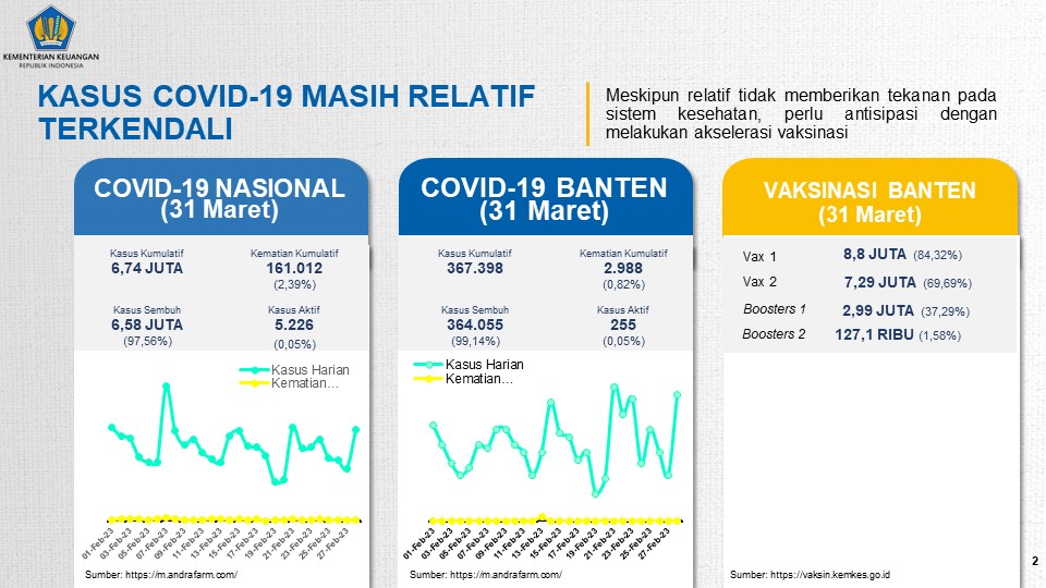 Perkembangan kondisi Covid-19 di Provinsi Banten yang pada akhir Maret 2023