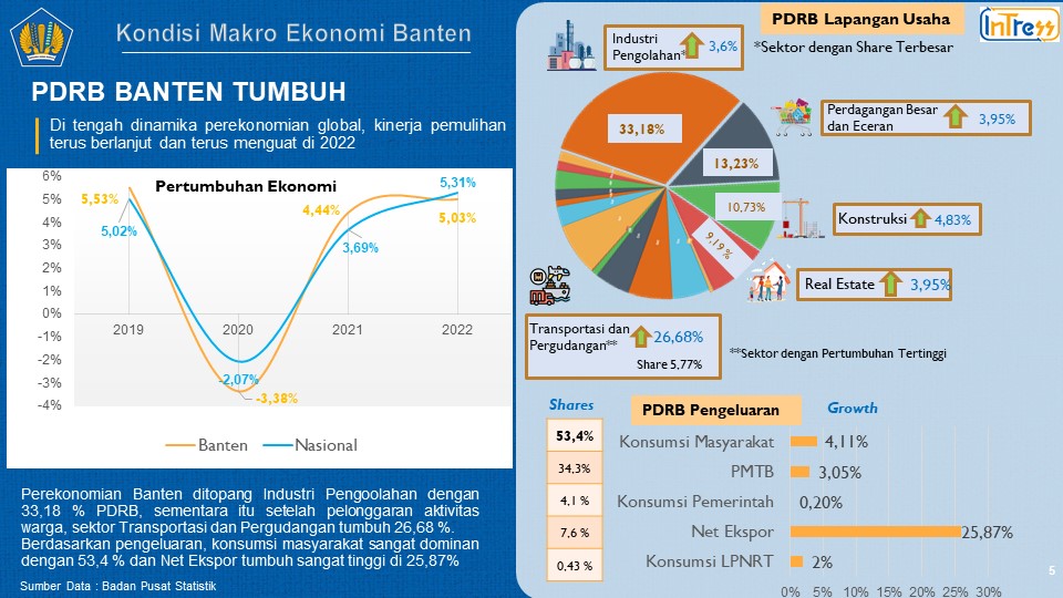 Ekonomi Makro di Banten, sampai dengan akhir kuartal IV 2022 tumbuh solid, PDRB
