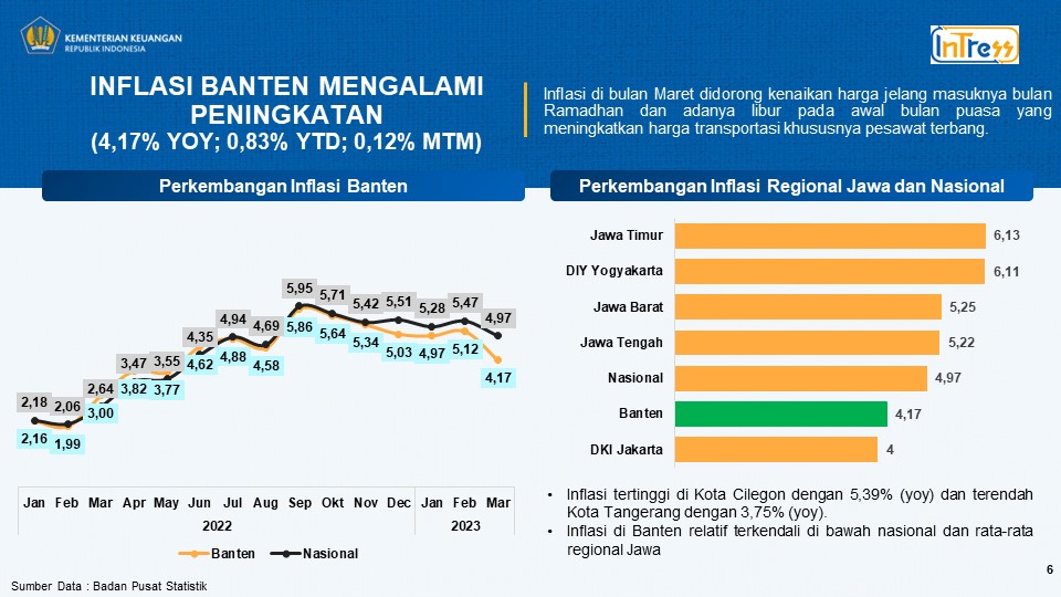 Banten dengan angka 4,17 persen (yoy) yang lebih rendah dibandingkan inflasi