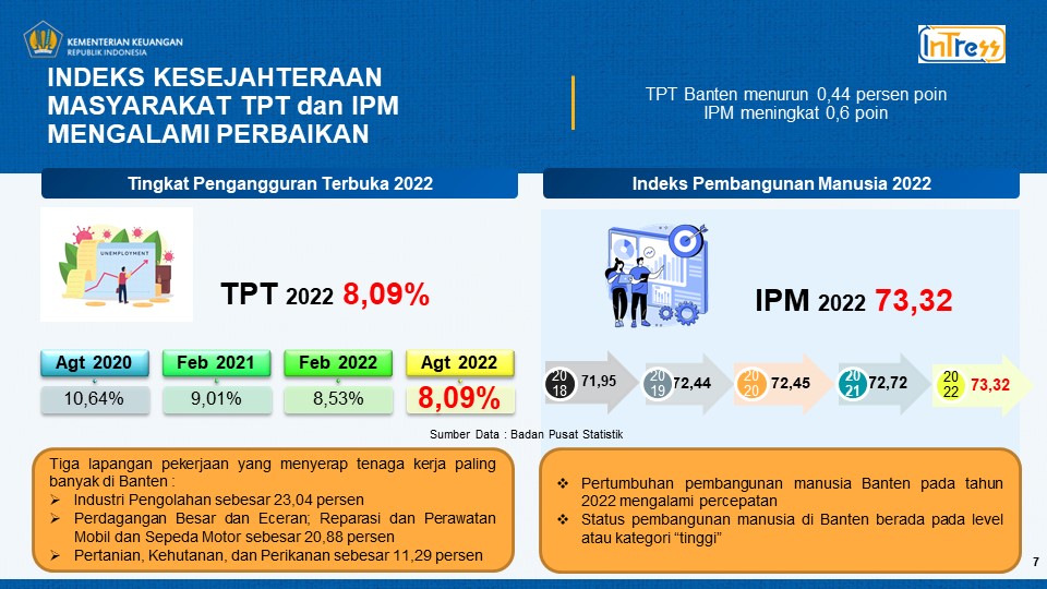 kesejahteraan masyarakat Banten dari sisi pembangunan manusia dan TPT tidak