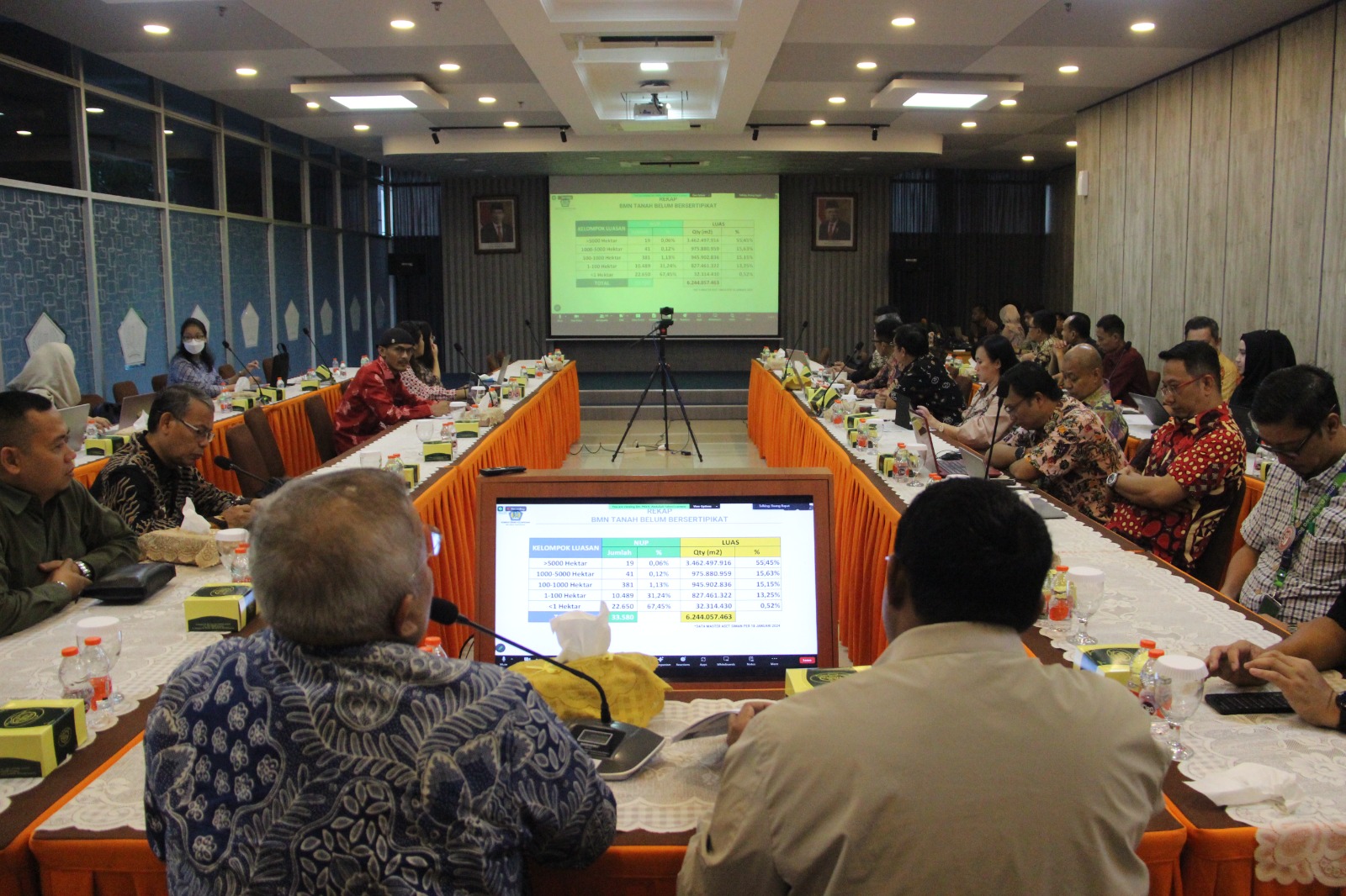 BANDUNG—Direktorat Perumusan Kebijakan Kekayaan Negara (PKKN) DJKN mengundang pejabat dan pegawai Bidang Pengelolaan Kekayaan Negara pada Kantor Wilayah DJKN dan KPKNL serta seluruh Kanwil BPN dalam kegiatan Pembahasan Pelaksanaan Pensertipikatan BMN berupa Tanah TA 2024 dan Rekonsiliasi Data Capaian TA 2023. Kegiatan diselenggarakan di R. Sidang, Gedung Keuangan Negara Bandung pada Selasa (23/01).