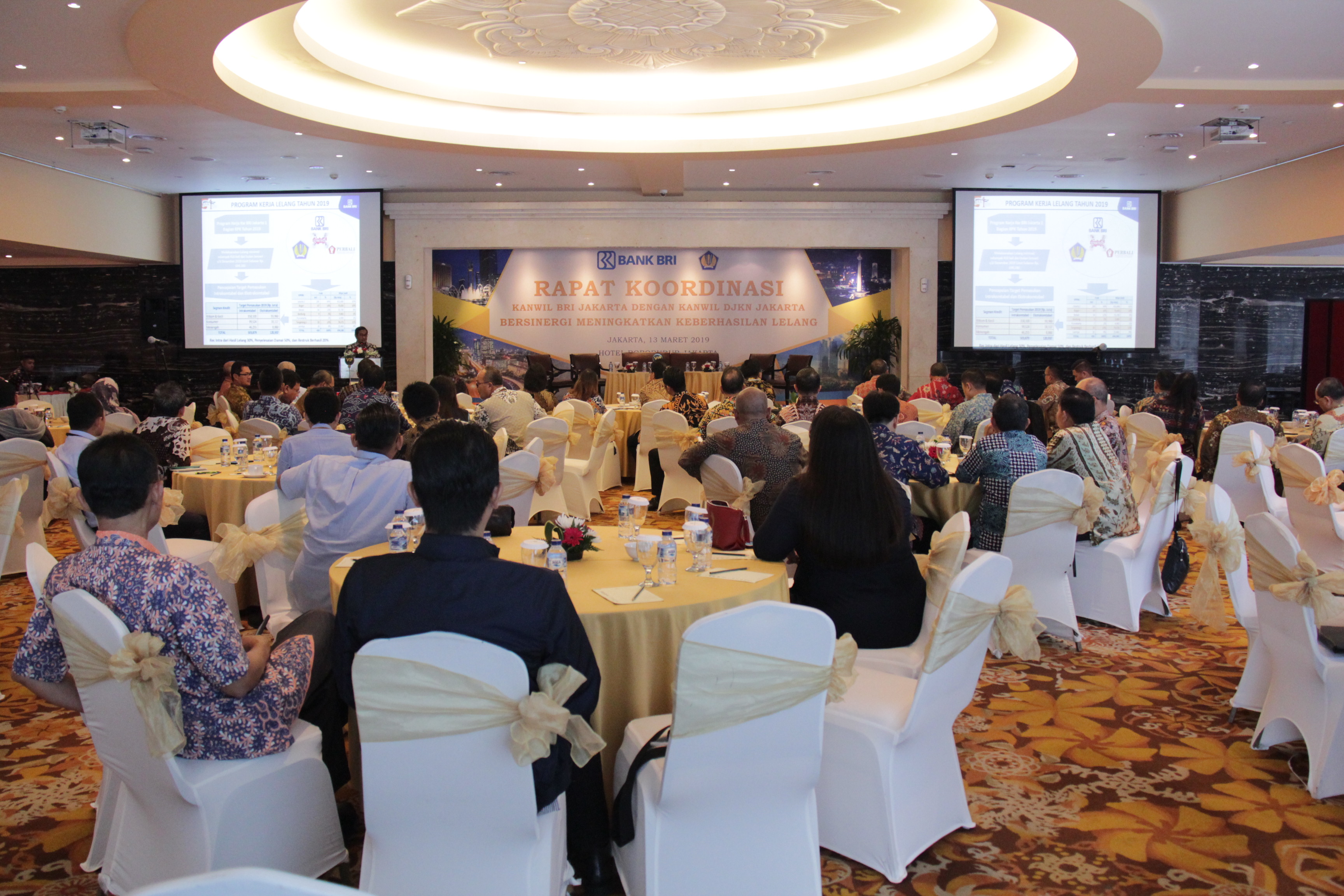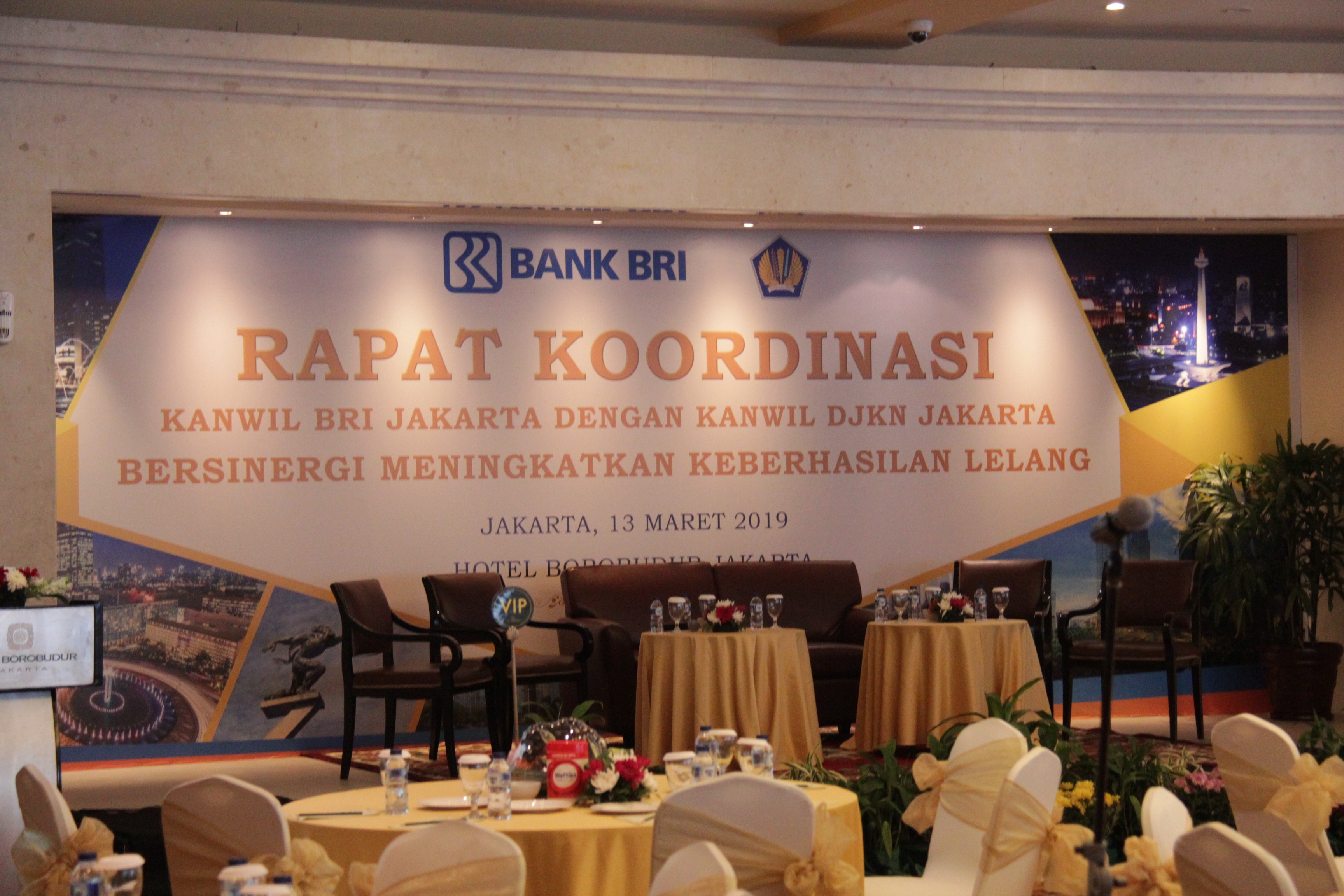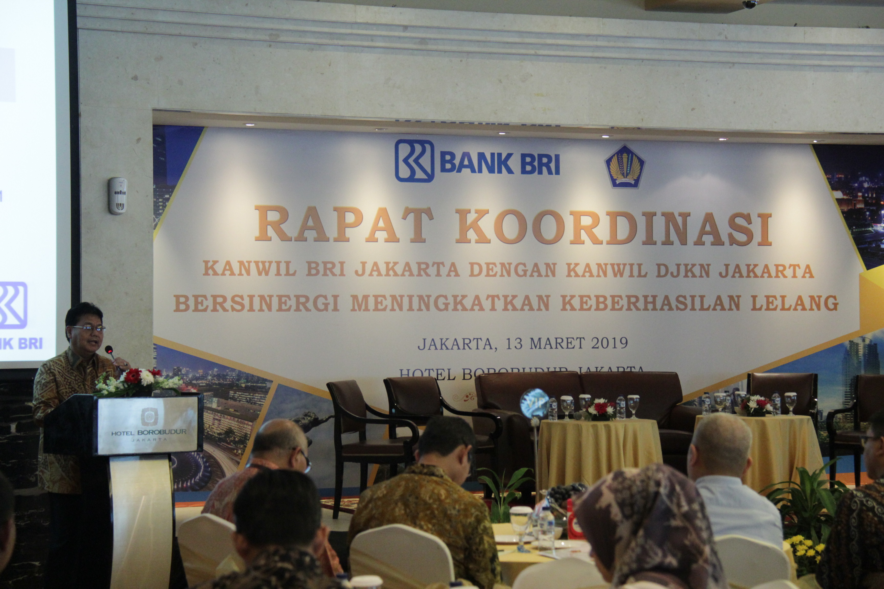 Rabu, 13 Maret 2019, bertempat di Singosari room Hotel Borobudur Jakarta, diselenggarakan kegiatan Rapat Koordinasi antara Kanwil BRI Wilayah Jakarta dan Kanwil DJKN DKI Jakarta dengan tema Bersinergi Meningkatkan Keberhasilan Lelang. Koordinasi tersebut ditandai secara simbolis dengan penyerahan plakat antara Kepala Kanwil DJKN DKI Jakarta Hady Purnomo dan Pemimpin Wilayah BRI Jakarta 1 Hari Siaga.