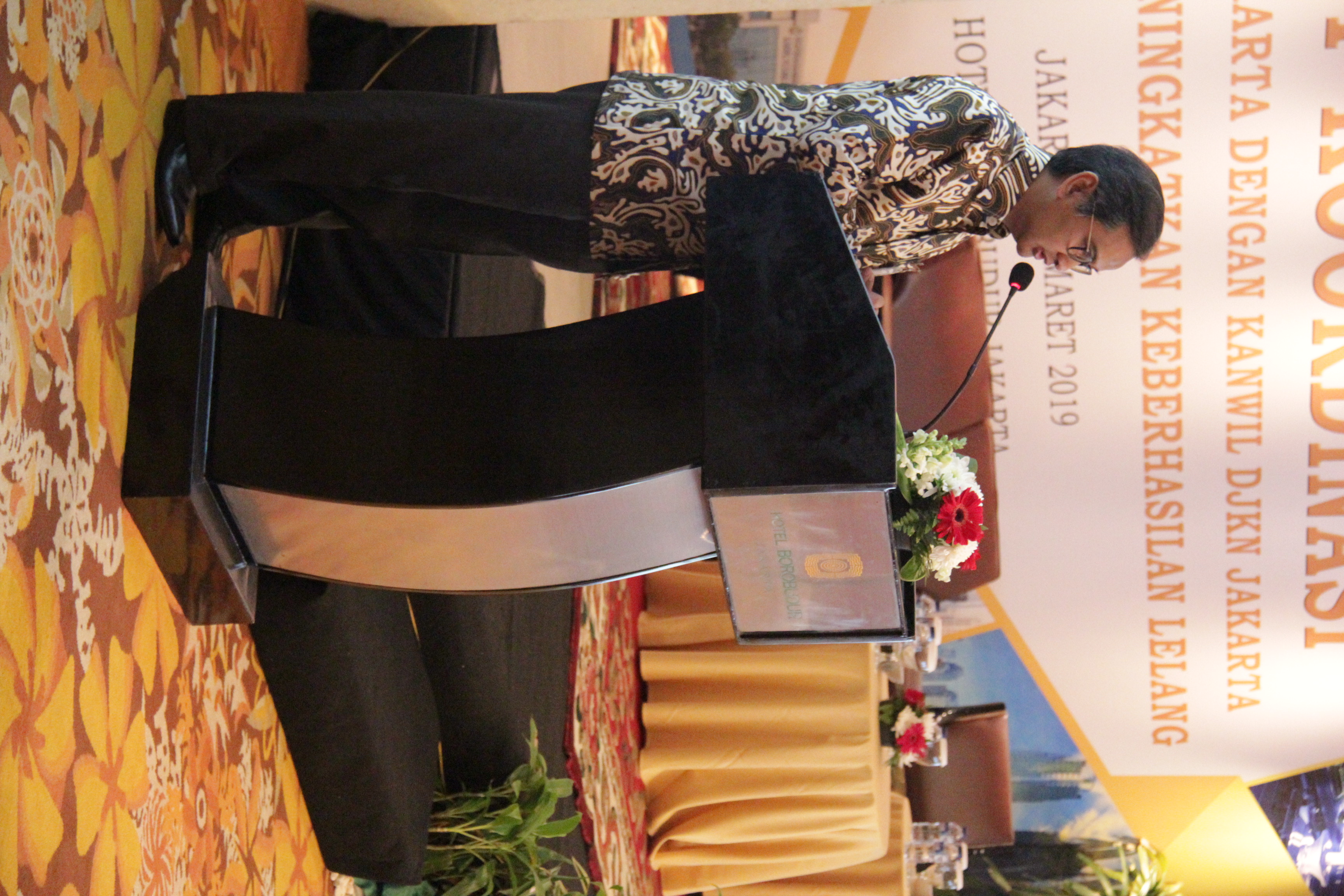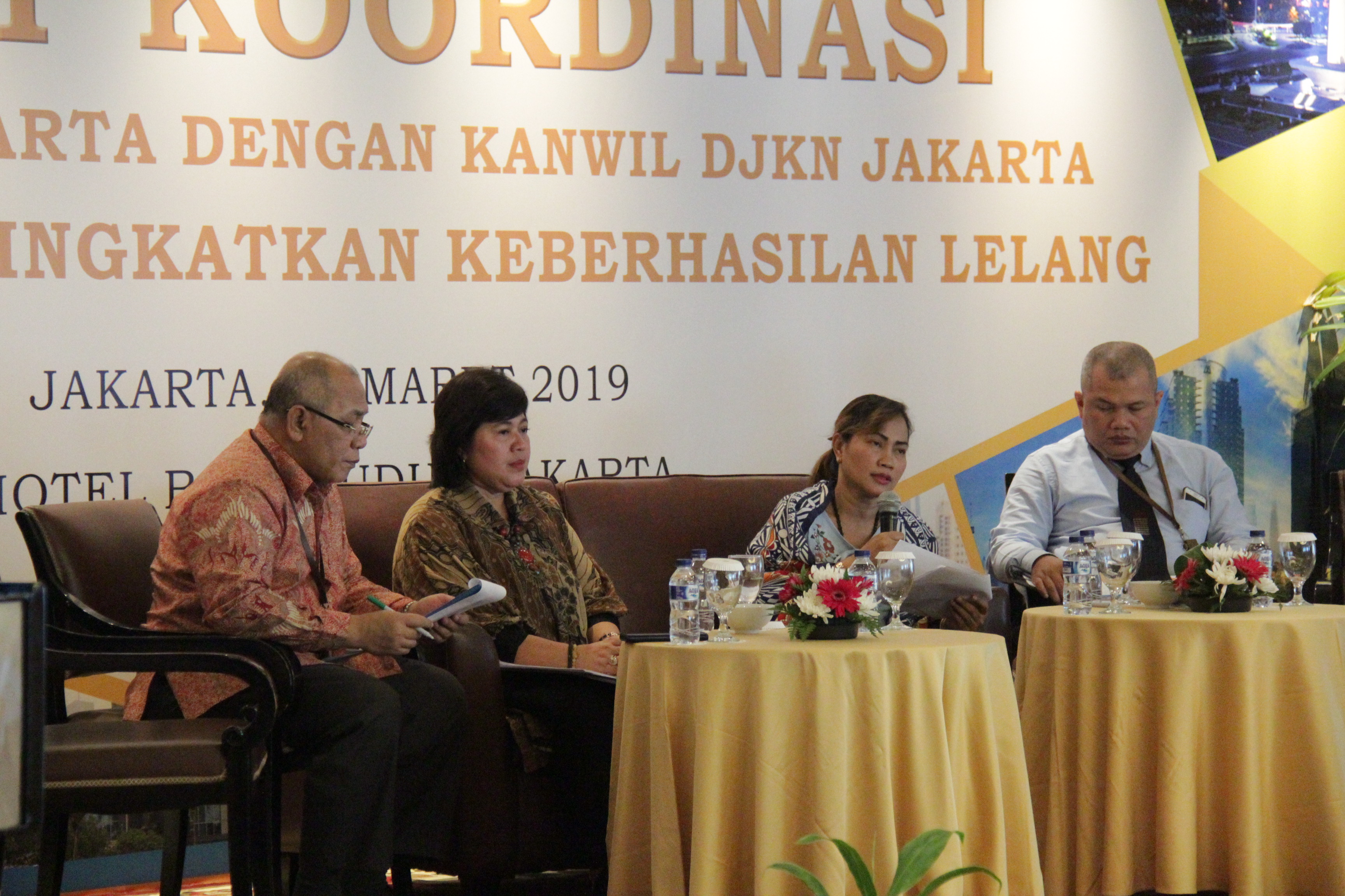 Sementara itu, Kepala Kanwil DJKN DKI Jakarta Hady Purnomo menyampaikan bahwa tema rapat koordinasi kali ini yaitu bersinergi meningkatkan keberhasilan lelang sangat sesuai dengan nilai-nilai yang ada di Kementerian Keuangan sehingga kegiatan ini disambut baik oleh Kanwil DJKN DKI Jakarta. Hady juga menyampaikan hasil review kinerja di bidang lelang pada tahun 2017-2018 dan dari hasil review tersebut masih banyak lelang dengan hasil tidak ada peminat.