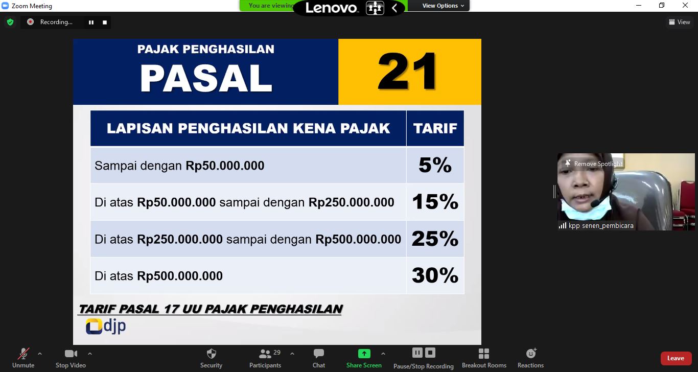 Jakarta V. Narasumber sosialisasi kali ini berasal dari personil pegawai KPP