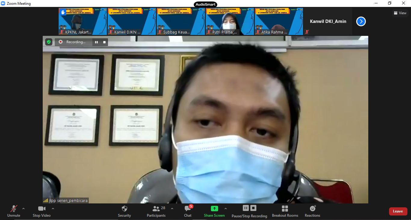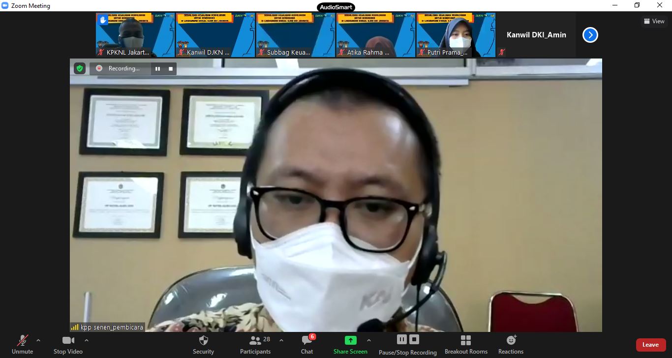 Bendahara di Lingkungan Kanwil DJKN DKI Jakarta secara virtual melalui aplikasi