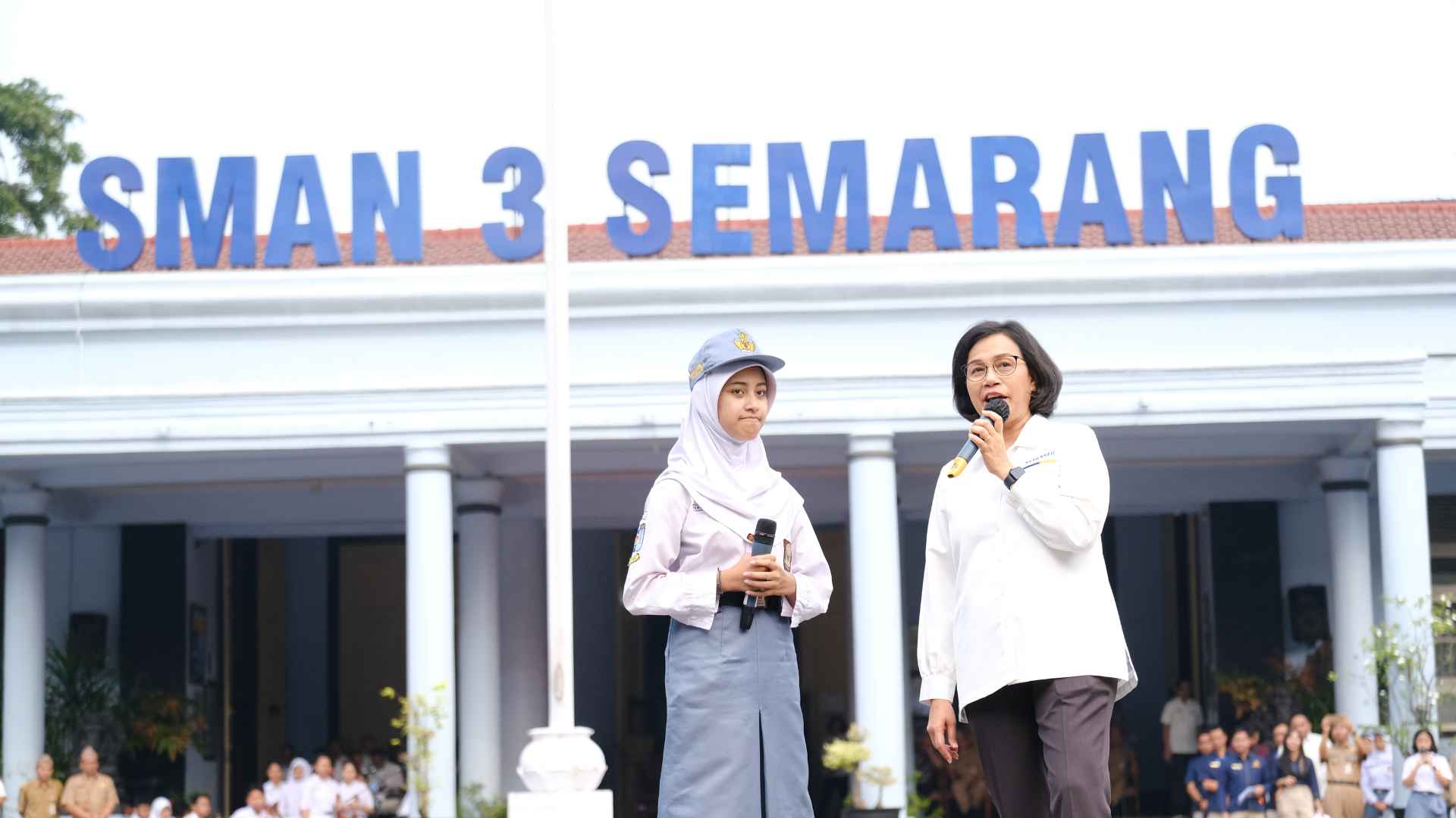 Menteri Keuangan, Ibu Sri Mulyani Indrawati, selalu turut serta dalam pelaksanaan Hari Mengajar. Pada Kemenkeu Mengajar ini, beliau mengajar di SMA 3 Semarang, yang juga merupakan sekolah tempat beliau menimba ilmu pada jenjang SMA. Dalam kesempatan ini, Menkeu menyampaikan peran Kementerian Keuangan dalam mengelola keuangan negara melalui Anggaran Pendapatan dan Belanja Negara (APBN), peran APBN dalam dunia pendidikan masa kini, pengenalan profesi yang ada di Kementerian Keuangan, serta cerita inspiratif untuk menjaga semangat belajar. “Keuangan negara adalah uangnya negara, makanya dari mulai pendapatan, belanja yang kemudian disusun dalam bentuk anggaran dibutuhkan buat apa saja dibuat perencanaan anggarannya yang kemudian dijalankan”, jelasnya. Menkeu menambahkan bahwa APBN bekerja dengan menjalankan 3 (tiga) fungsi dalam ekonomi yaitu stabilisasi, alokasi, dan distribusi. APBN sebagai instrumen kebijakan fiskal diselaraskan dengan siklus perekonomian dimana ekonomi terdiri dari sisi produksi dan sisi permintaan (supply and demand). “Jadi mengelola ekonomi kayak Menteri Keuangan, pada dasarnya harus memastikan supply dan demand berjalan secara harmonis tujuannya supaya berkelanjutan stabil tapi juga tumbuh”, tutur Menkeu.