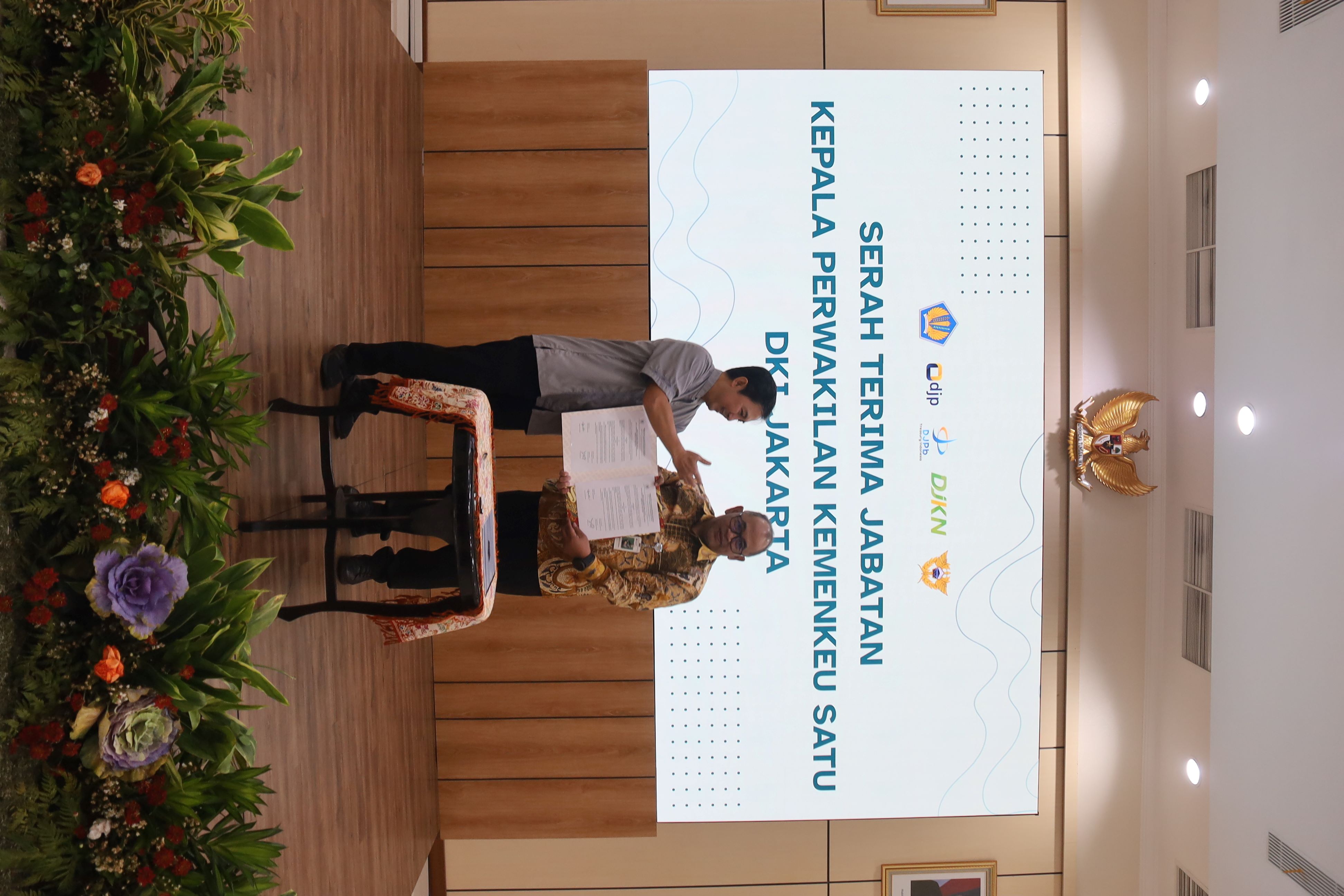 Jakarta, 16 April 2026, Bertempat di Aula Pendopo Parapattan 10 Kanwil DJKN DKI Jakarta, Perwakilan Kementerian Keuangan Satu Provinsi Daerah Khusus Jakarta melaksanakan kegiatan serah terima jabatan Kepala Perwakilan Tahun 2026 dari Bapak Eddi Wahyudi (semula menjabat sebagai Kepala Kanwil DJP Jakarta Pusat yang sekarang menjabat sebagai Direktur Data dan Informasi Perpajakan DJP) kepada Bapak Dodok Dwi Handoko (Kepala Kanwil DJKN DKI Jakarta). Serah terima jabatan dilakukan berdasarkan KMK Nomor 2/MK/SJ.5/2026 tanggal 7 Januari 2026 tentang Penunjukan/Pengangkatan Kepala Perwakilan Kementerian Keuangan Tahun 2026.