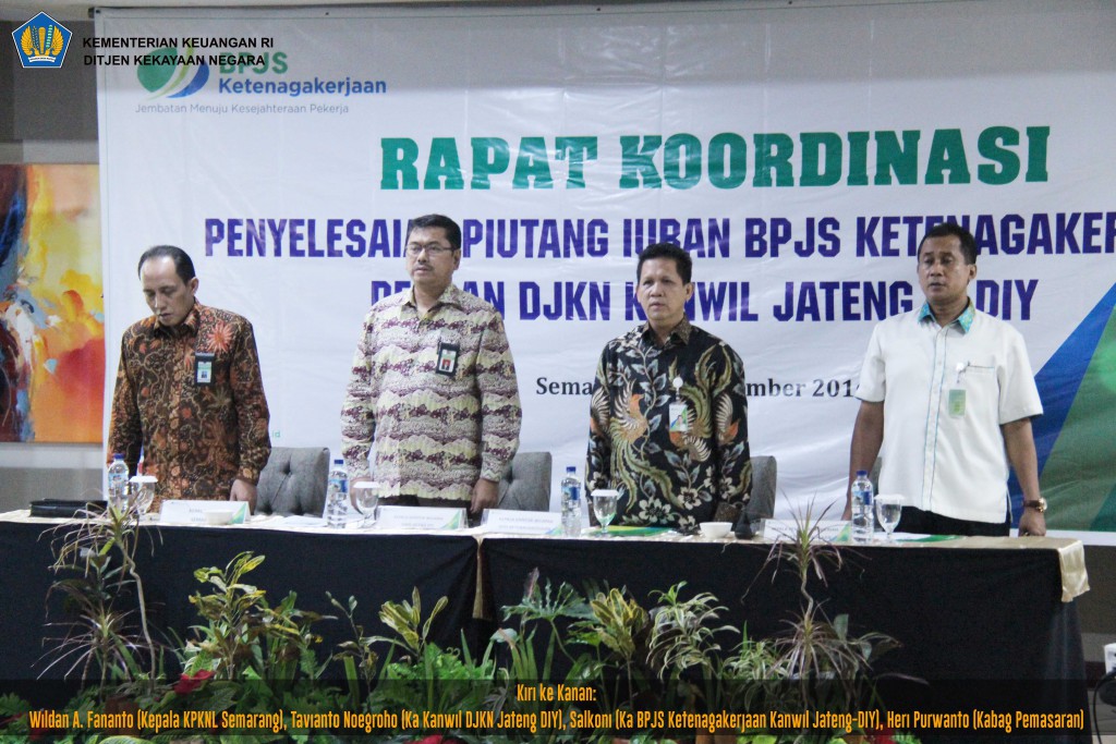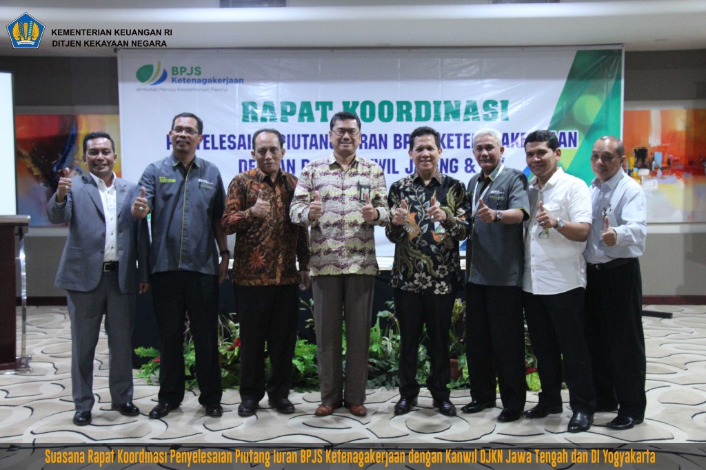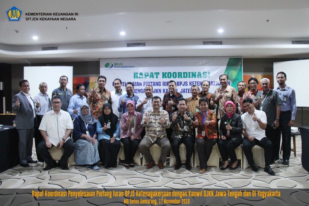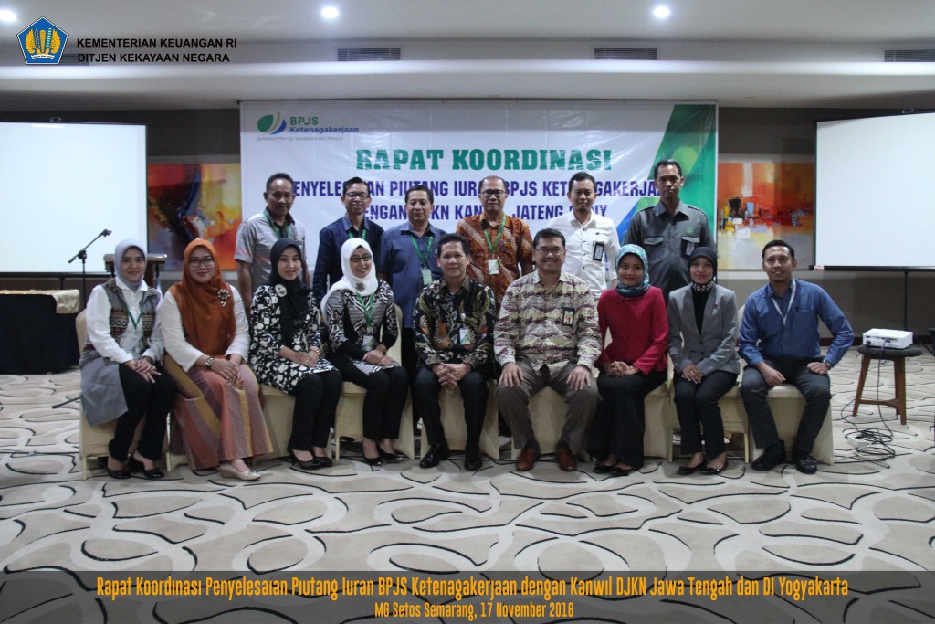 Dari hasil tersebut, BPJS Ketenagakerjaan Kanwil Jateng dan DI Yogyakarta mengundang Kanwil DJKN Jateng dan DI Yogyakarta untuk melakukan rapat koordinasi guna peningkatan pengurusan piutang. Rapat Koordinasi Penyelesaian Piutang Iuran BPJS Ketenagakerjaan diselenggarakan pada Kamis, 17 November 2016 bertempat di Hotel MG Setos Semarang.