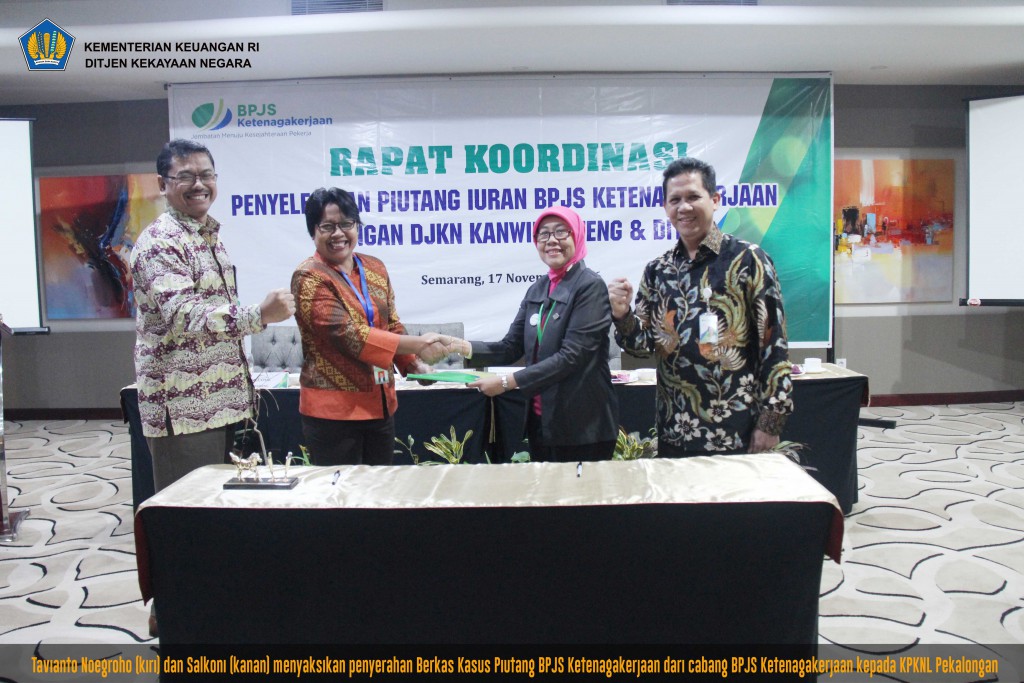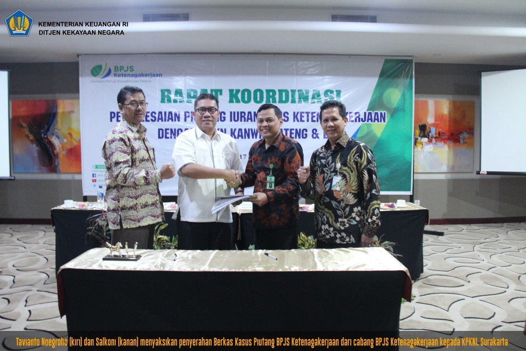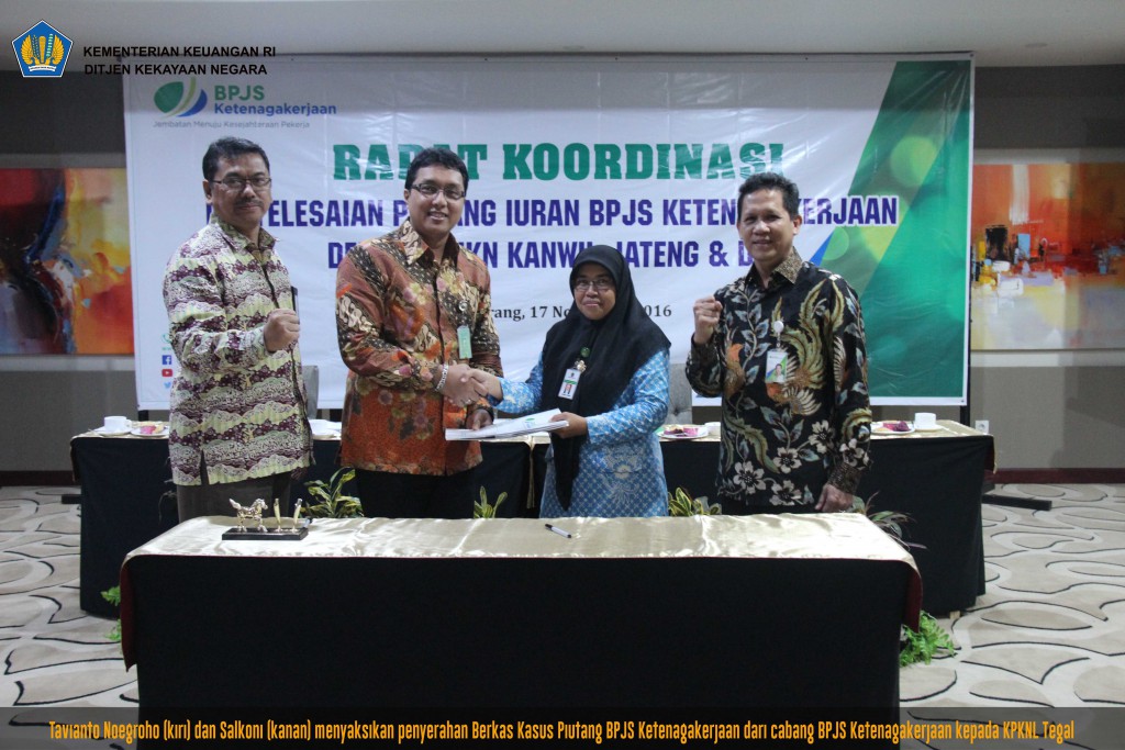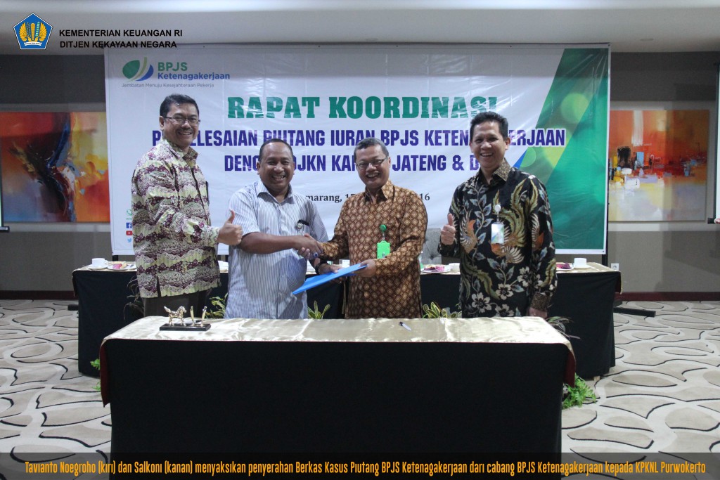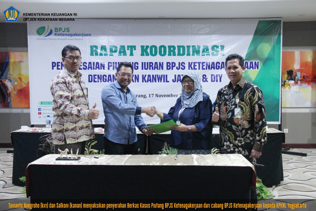 Dari hasil tersebut, BPJS Ketenagakerjaan Kanwil Jateng dan DI Yogyakarta mengundang Kanwil DJKN Jateng dan DI Yogyakarta untuk melakukan rapat koordinasi guna peningkatan pengurusan piutang. Rapat Koordinasi Penyelesaian Piutang Iuran BPJS Ketenagakerjaan diselenggarakan pada Kamis, 17 November 2016 bertempat di Hotel MG Setos Semarang.