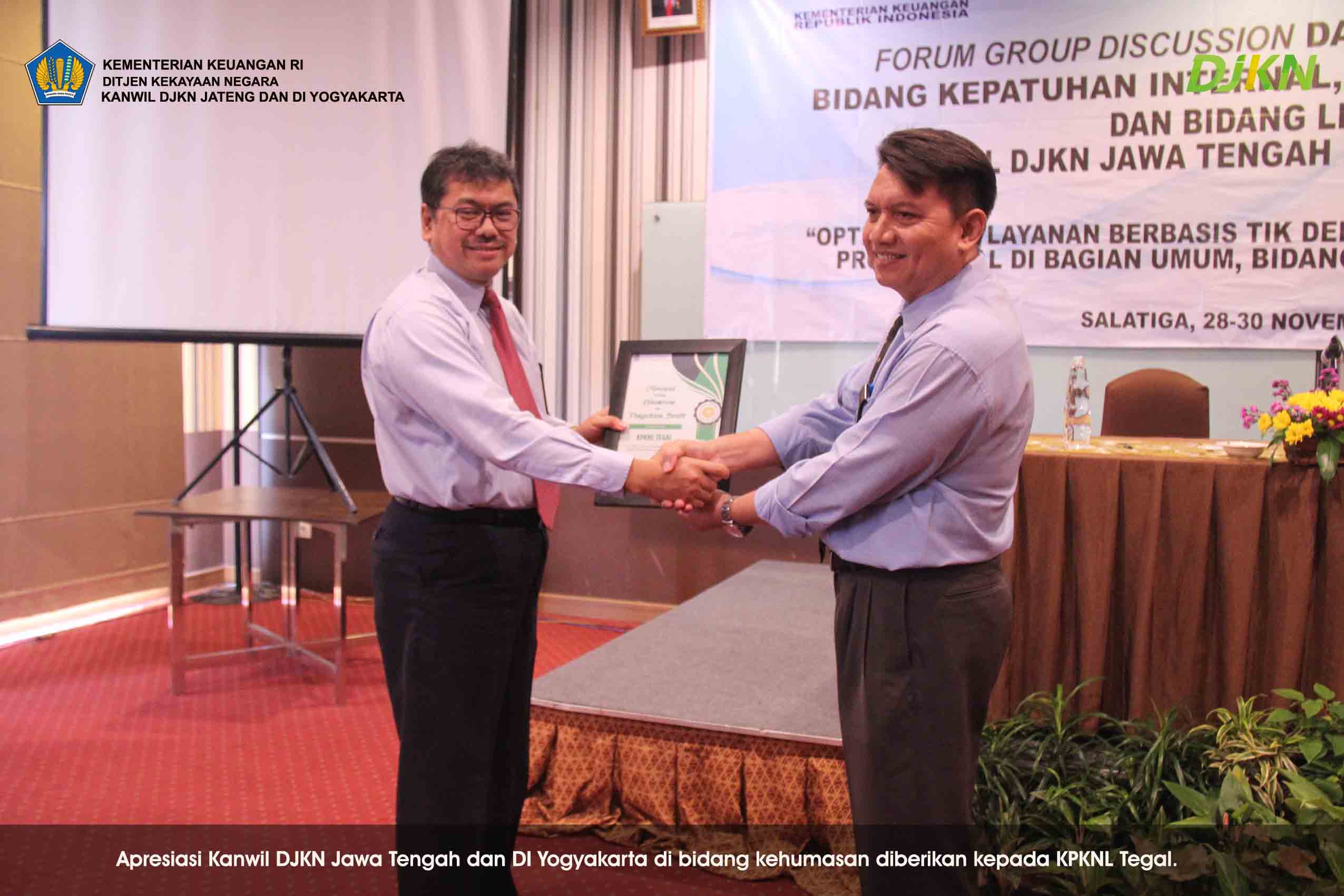 apresiasi di bidang kehumasan yang diberikan kepada KPKNL Tegal.