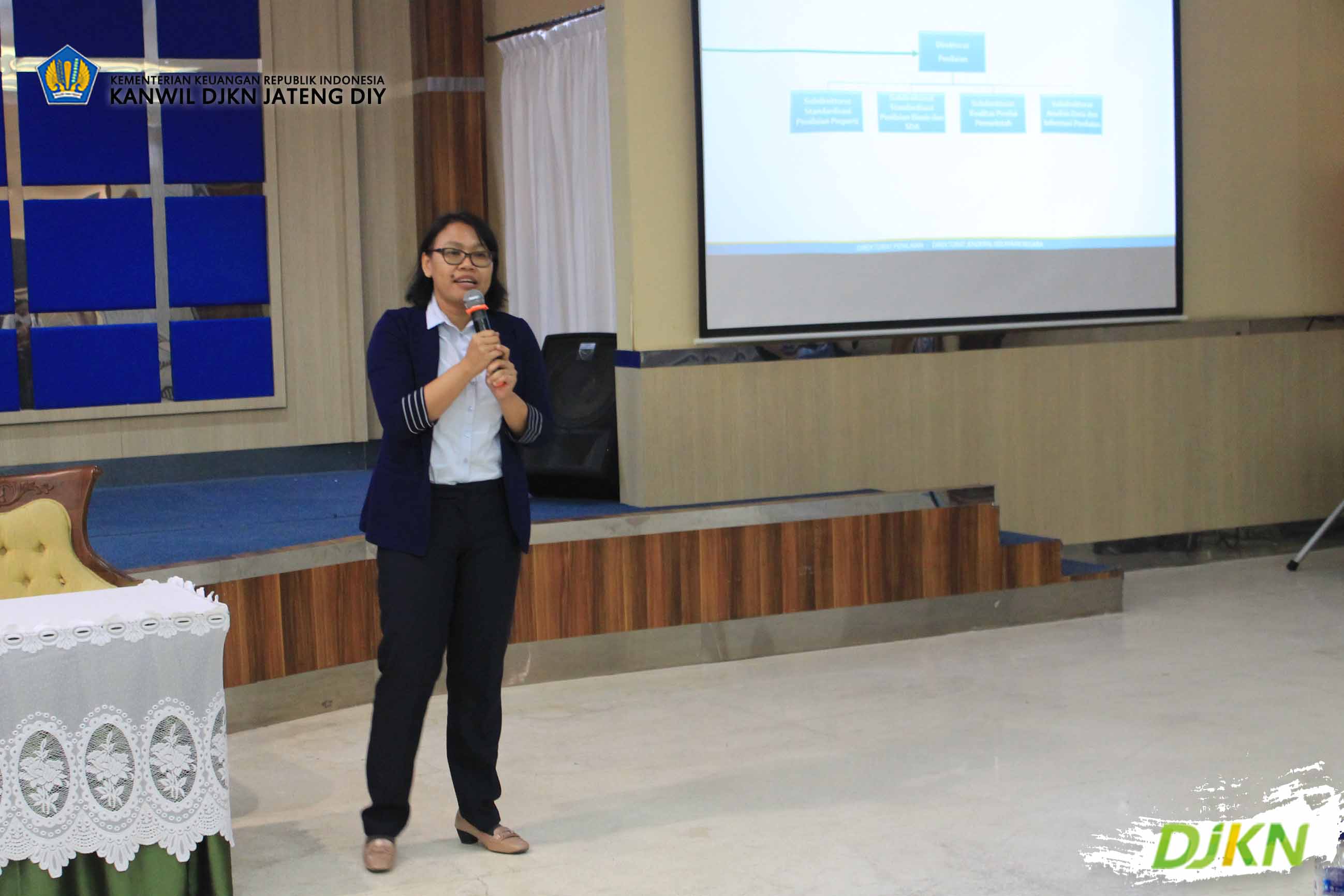 Acara di buka oleh Kepala Bidang Penilaian Umbang Winarsa yang mewakili Kepala Kanwil DJKN Jateng DIY. Umbang menyampaikan bahwa dinamika restrukturisasi kepegawaian di Indonesia mendorong pengembangan jabatan fungsional sebagai alternatif pengembangan karir ASN. Sistem kepegawaian yang “Ramping Struktur, Kaya Fungsi” diharapakan dapat menjadikan ASN lebih profesional dan berkembang