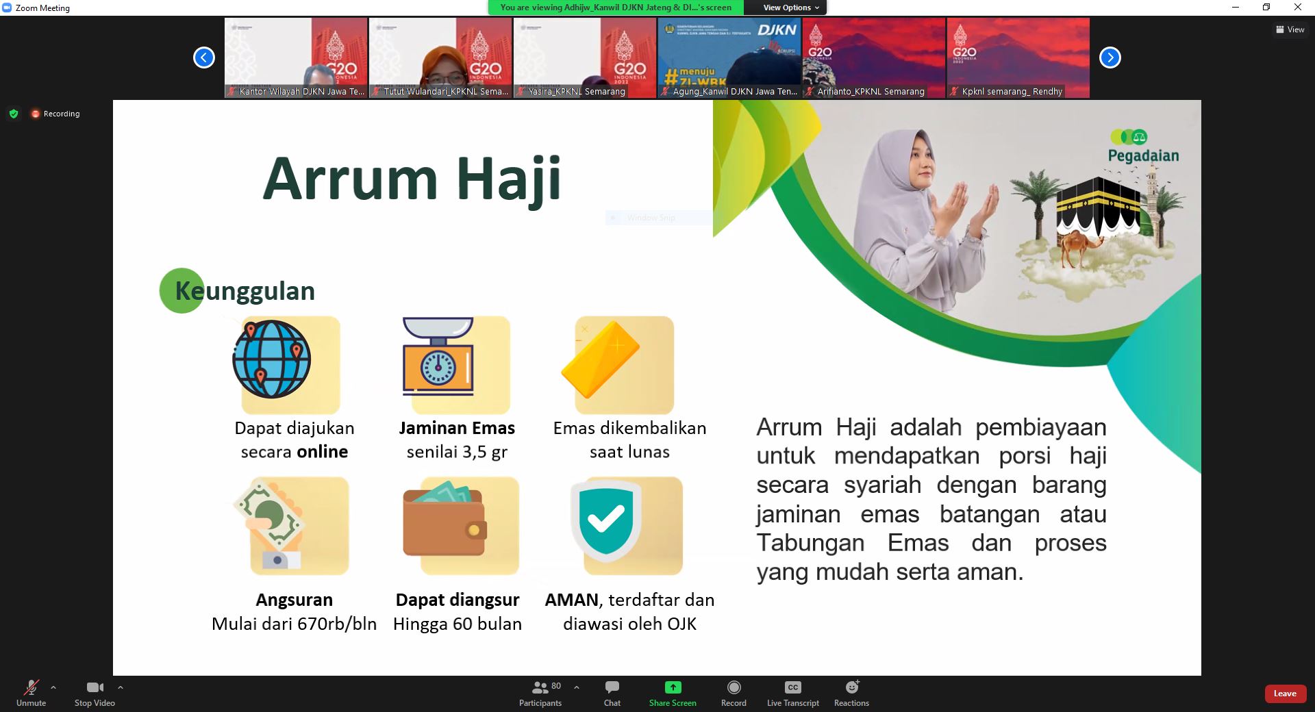 Acara sosialisasi yang dibuka secara langsung oleh Kakanwil DJKN Jateng dan DIY Mahmudsyah dan Deputy Bisnis Area Semarang PT Pegadaian (Persero) Semarang, Yuhanis Wulang disambut dengan hangat dan antusias tinggi oleh seluruh audiens yang terdiri dari pegawai di Kanwil DJKN Jawa Tengah dan Daerah Istimewa Yogyakarta dan KPKNL Semarang. Sosialisasi ini memberikan penambahan wawasan kepada para Pegawai untuk mengenal lebih dekat produk dan layanan yang diberikan PT Pegadaian (Persero) kepada masyarakat. Produk dan layanan yang terus menerus dibenahi dan bertransformasi untuk memberikan layanan yang maksimal kepada nasabah dalam mewujudkan motto “Mengatasi Masalah tanpa Masalah”.