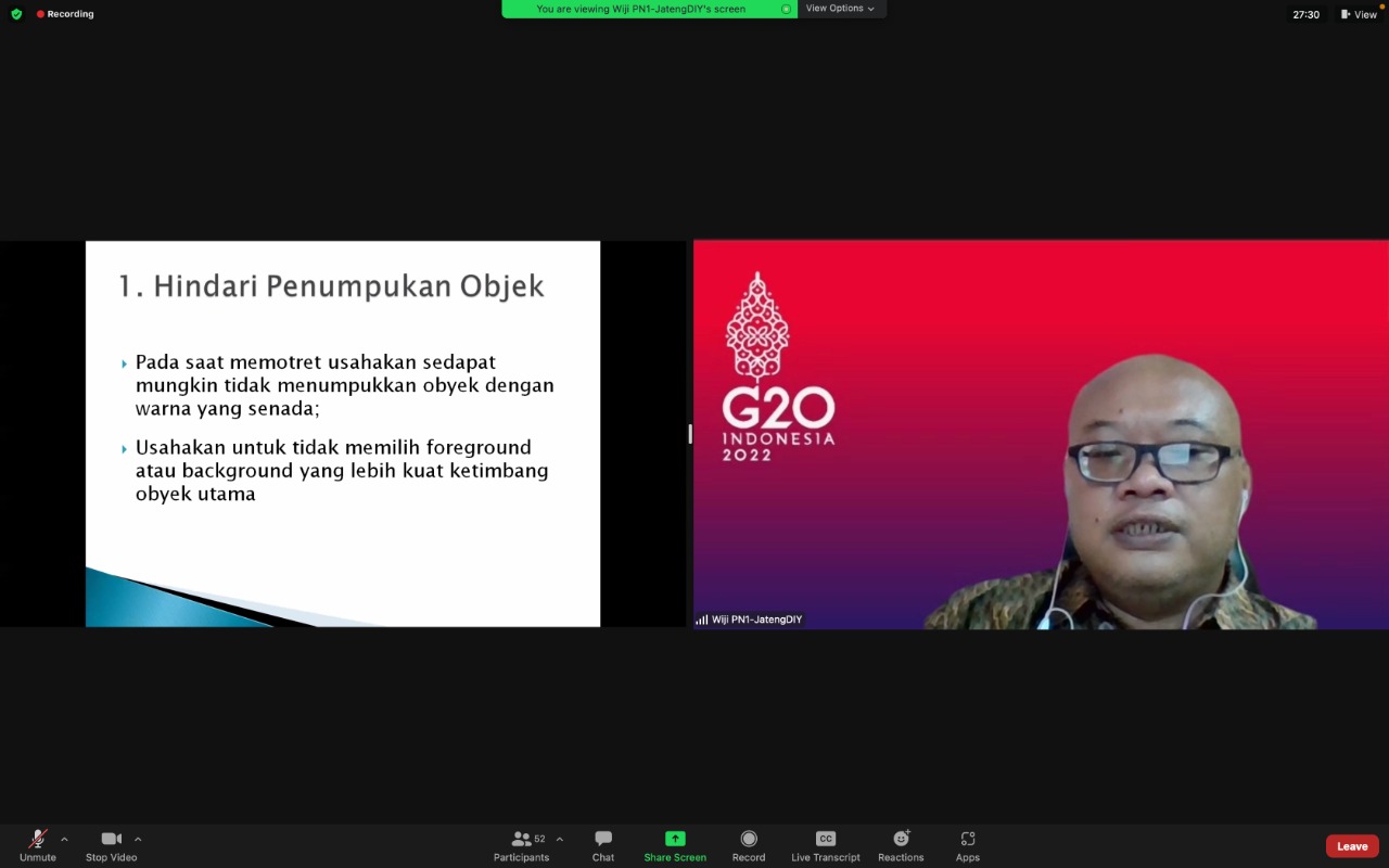 Pada Selasa (08/02) kali ini, Kepala Seksi Piutang Negara I, Wiji Yudhiharso Kusumo Putro, berkesempatan untuk memaparkan materi fotografi dengan tajuk Indahnya Melukis dengan Cahaya. Wiji menjelaskan bahwa kata “fotografi” atau “photography” dalam Bahasa Inggris, berasal dari kata Bahasa Yunani yaitu “phos” yang berarti cahaya dan “graphien” yang berarti melukis/menulis. Dengan kata lain forografi merupakan proses melukis/menulis dengan menggunakan cahaya.