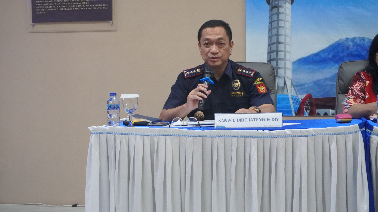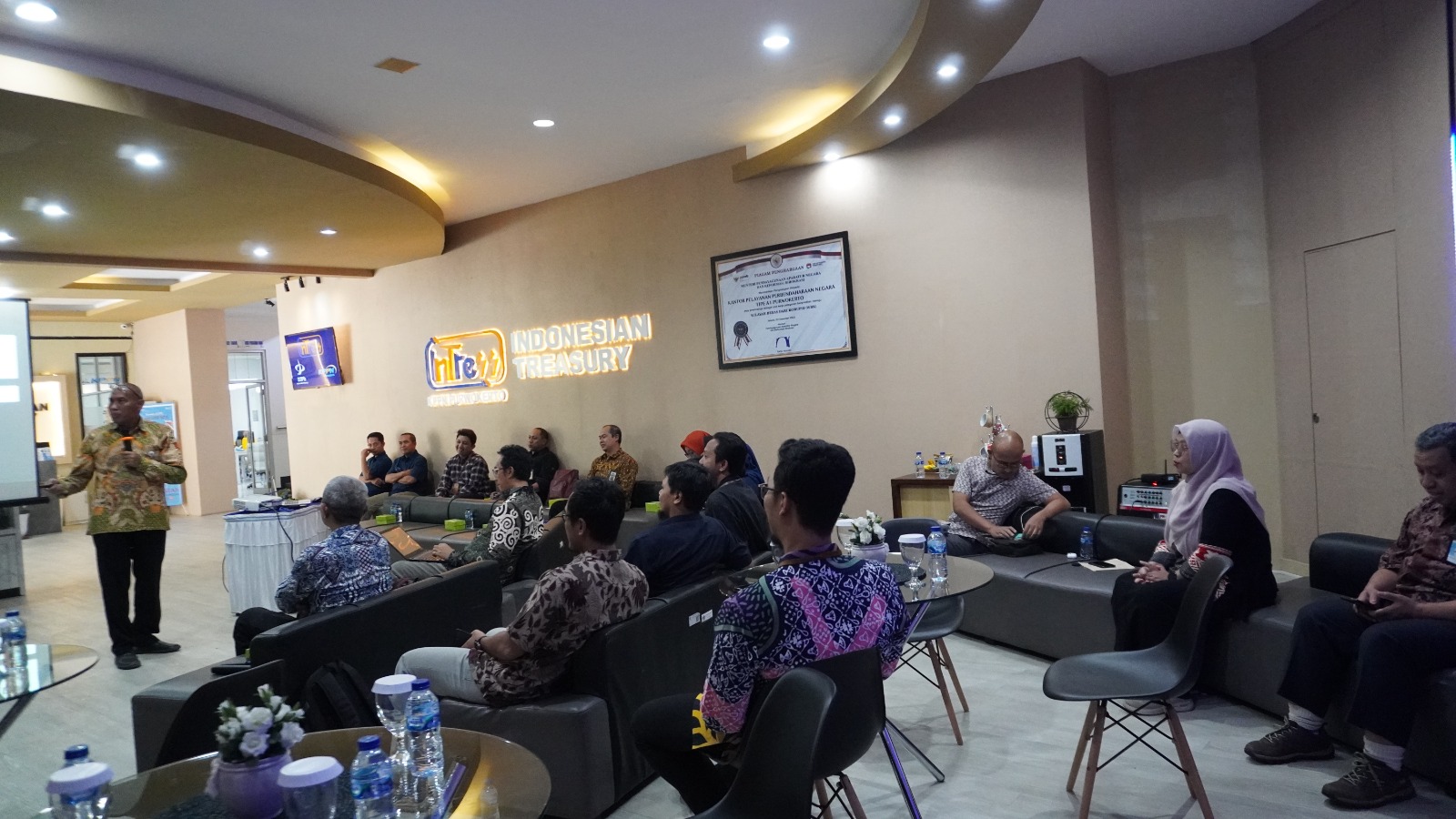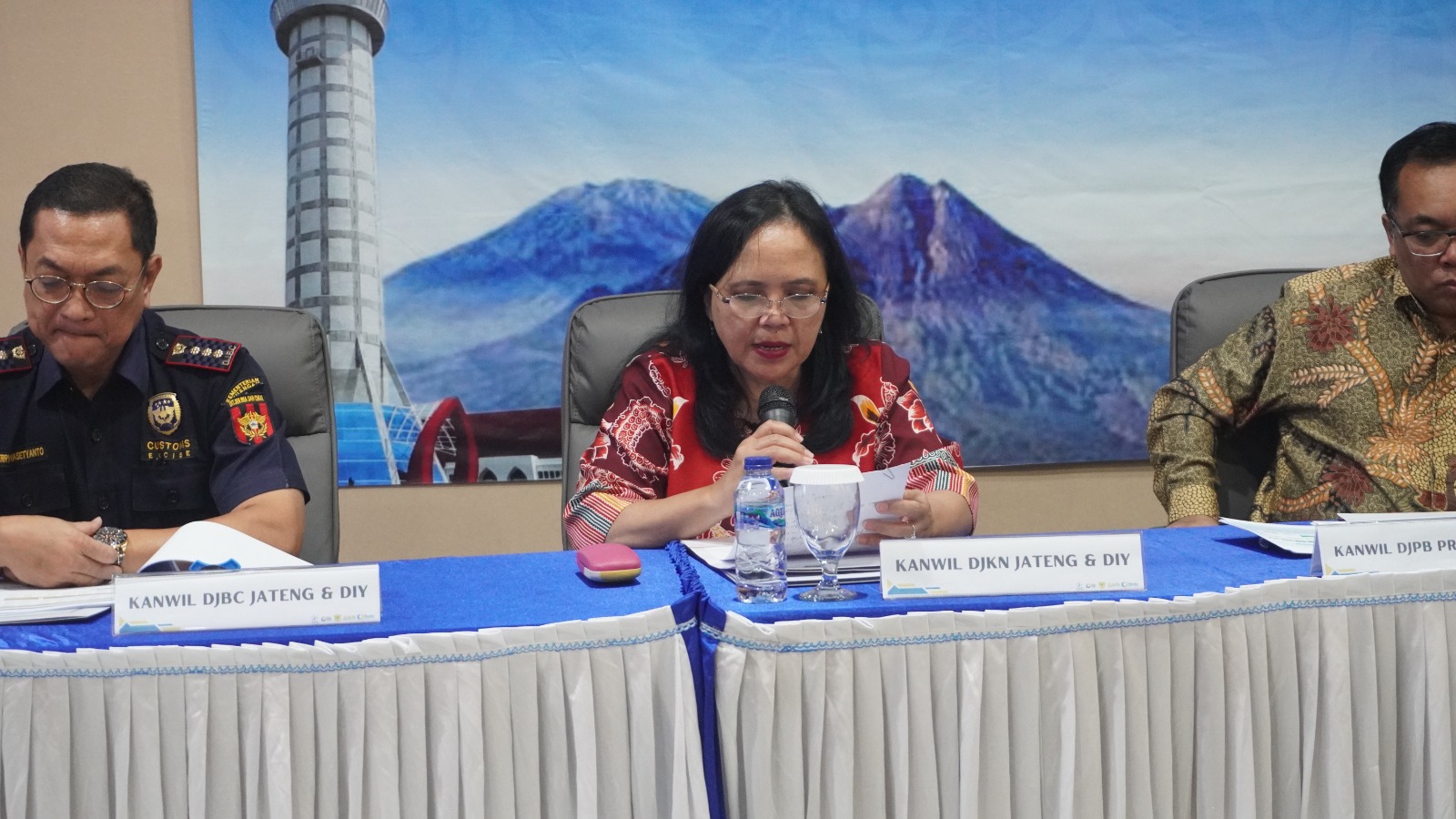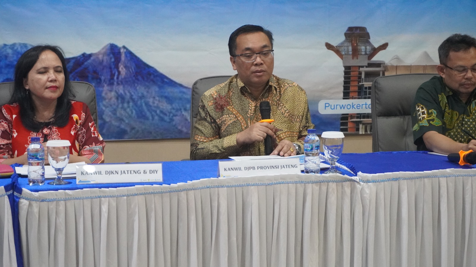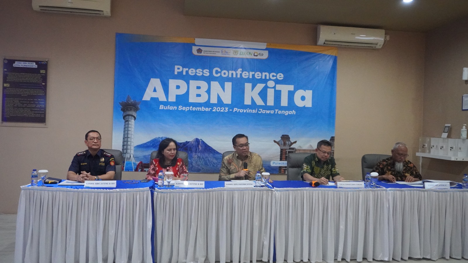 Purwokerto, 21 September 2023 - Perwakilan Kementerian Keuangan Jawa Tengah menyampaikan kinerja APBN wilayah Jawa Tengah periode s.d. 31 Agustus 2023 yang dihadiri oleh Kepala Kanwil DJPb Jawa Tengah selaku Kepala Perwakilan Kemenkeu Jawa Tengah Muhdi, bersama Kepala Kanwil DJKN Jawa Tengah dan D.I.Y. Tri Wahyuningsih Retno Mulyani, Kepala Bidang Data dan Pengawasan Potensi Perpajakan (DP3) Kanwil DJP Jawa Tengah II Mochamad Taufiq, Kepala Kantor Bea Cukai Purwokerto Erry Prasetyanto, dan Local Expert Universitas Diponegoro Wahyu Widodo.