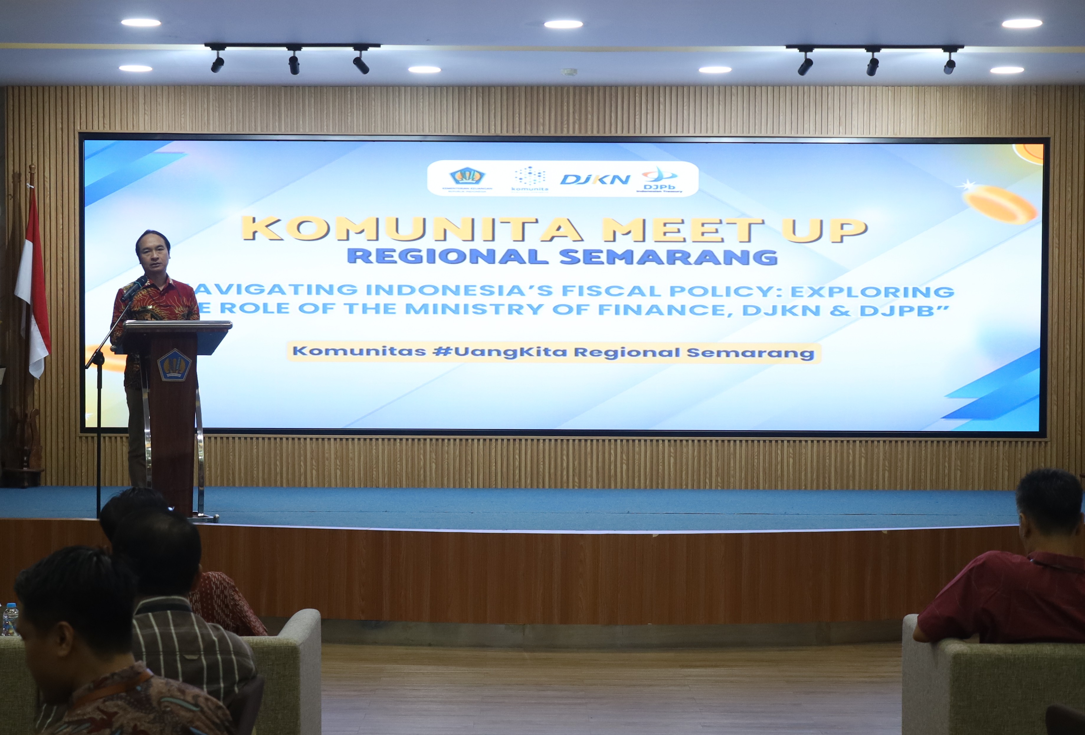 Semarang (21/08) - Kementerian Keuangan berkolaborasi dengan Komunitas #UangKita (Komunita) Regional Semarang menyelenggarakan Komunita Meet Up yang mengusung tema Navigating Indonesia's Fiscal Policy : Exploring The Role of The Ministry of Finance, DJKN & DJPB. Kegiatan ini diselenggarakan di Aula Lantai 4 Gedung Keuangan Negara II Semarang dan Kanwil DJKN Jawa Tengah dan D. I. Yogyakarta bersama Kanwil DJPb Jawa Tengah turut berpartisipasi dalam kegiatan ini.
