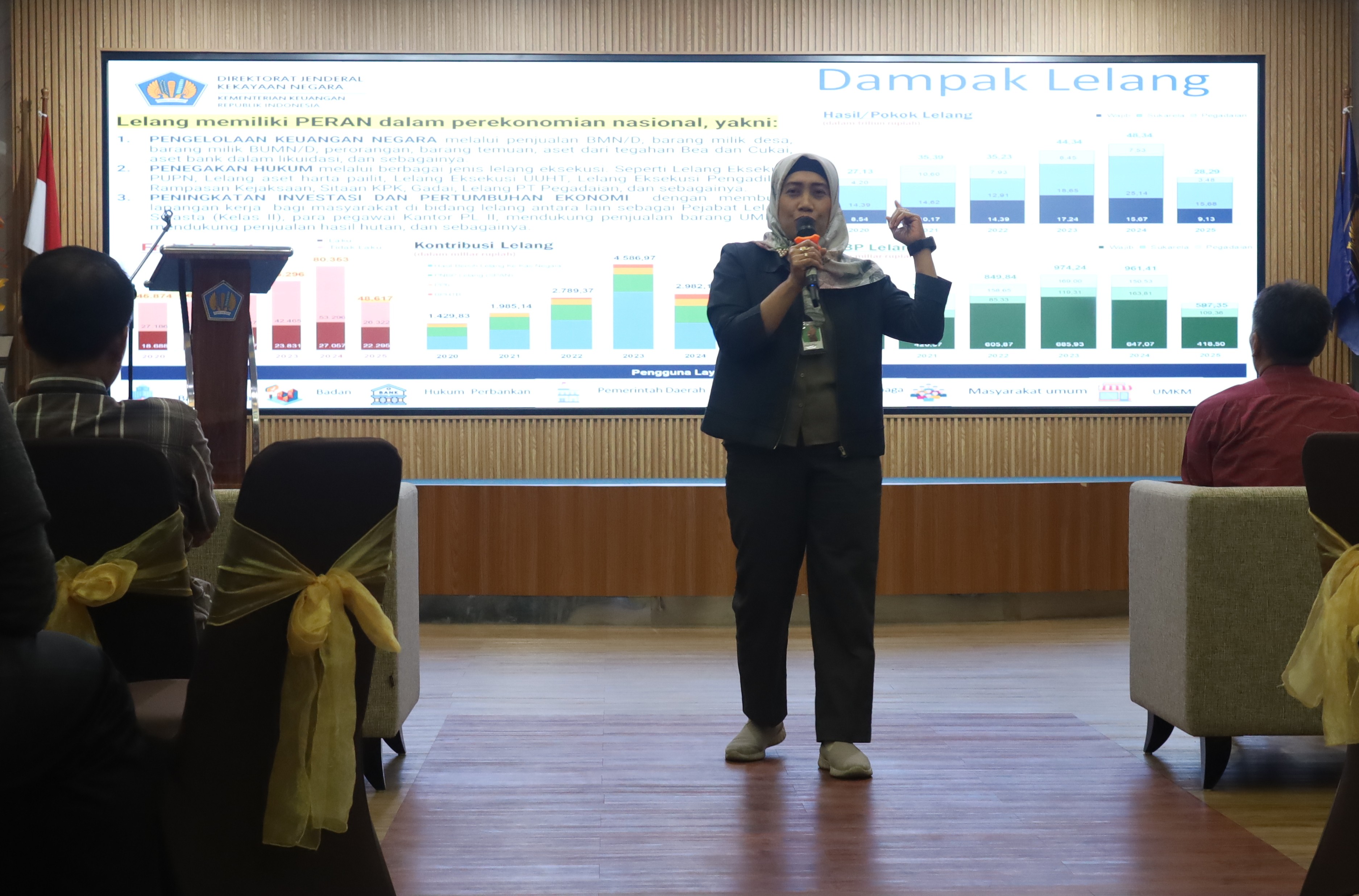 Acara diisi dengan pemaparan materi oleh Gunawan Kurnia Satriadi (pegawai Kanwil DJKN Jawa Tengah dan D. I. Yogyakarta) dengan tema Green Economics, Uus Kusyati (Analis Perbendaharaan Negara pada Kanwil DJPb Jawa Tengah) dengan tema APBN, dan Anna Kamilasari (Kepala Seksi Bimbingan Lelang I Kanwil DJKN Jawa Tengah dan D. I. Yogyakarta) yang mengenalkan tentang Lelang.