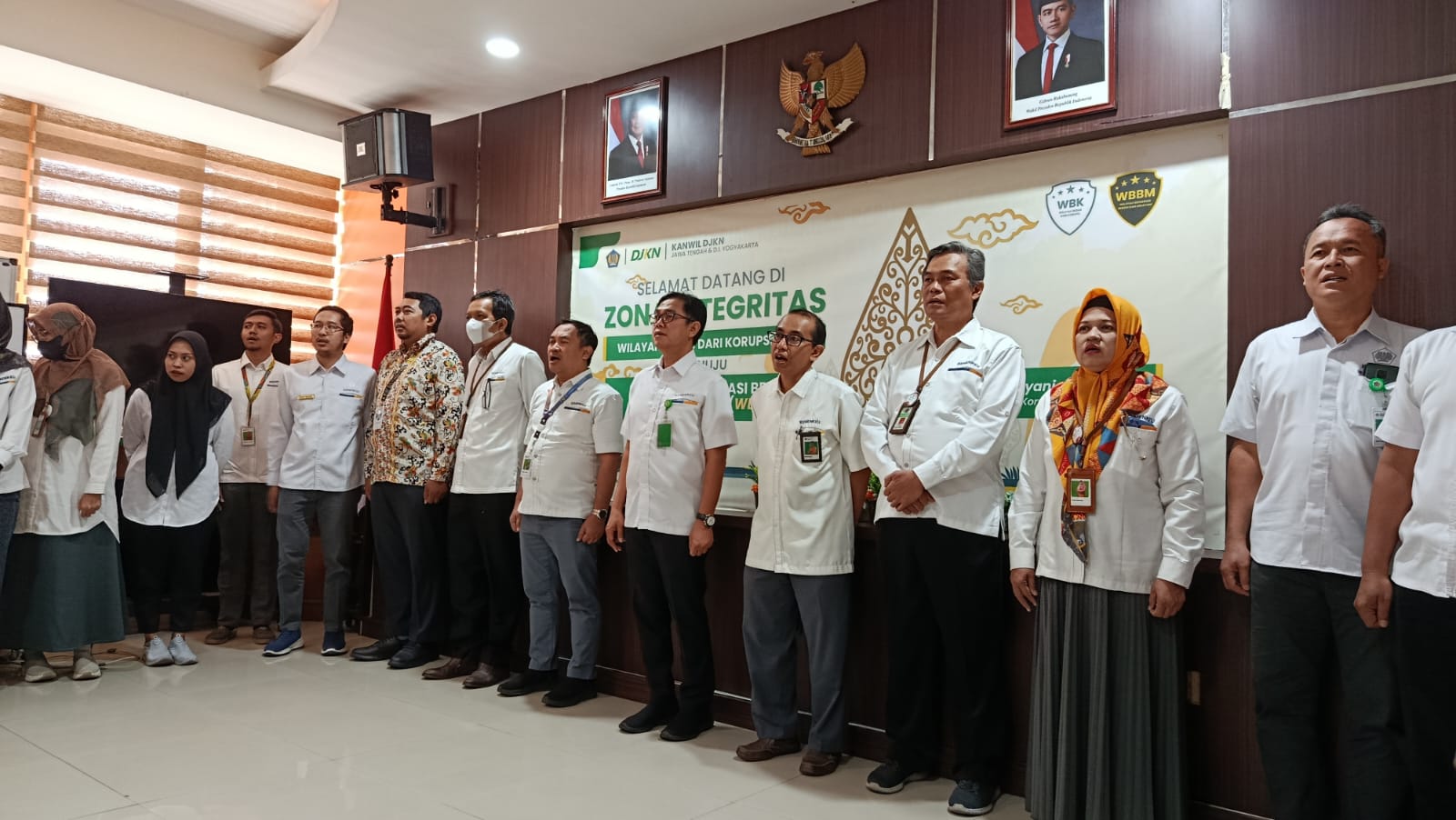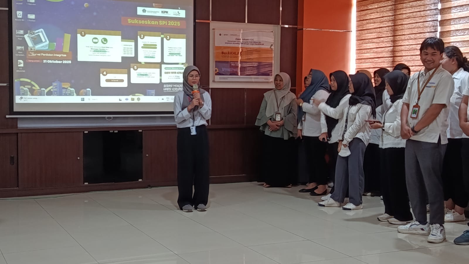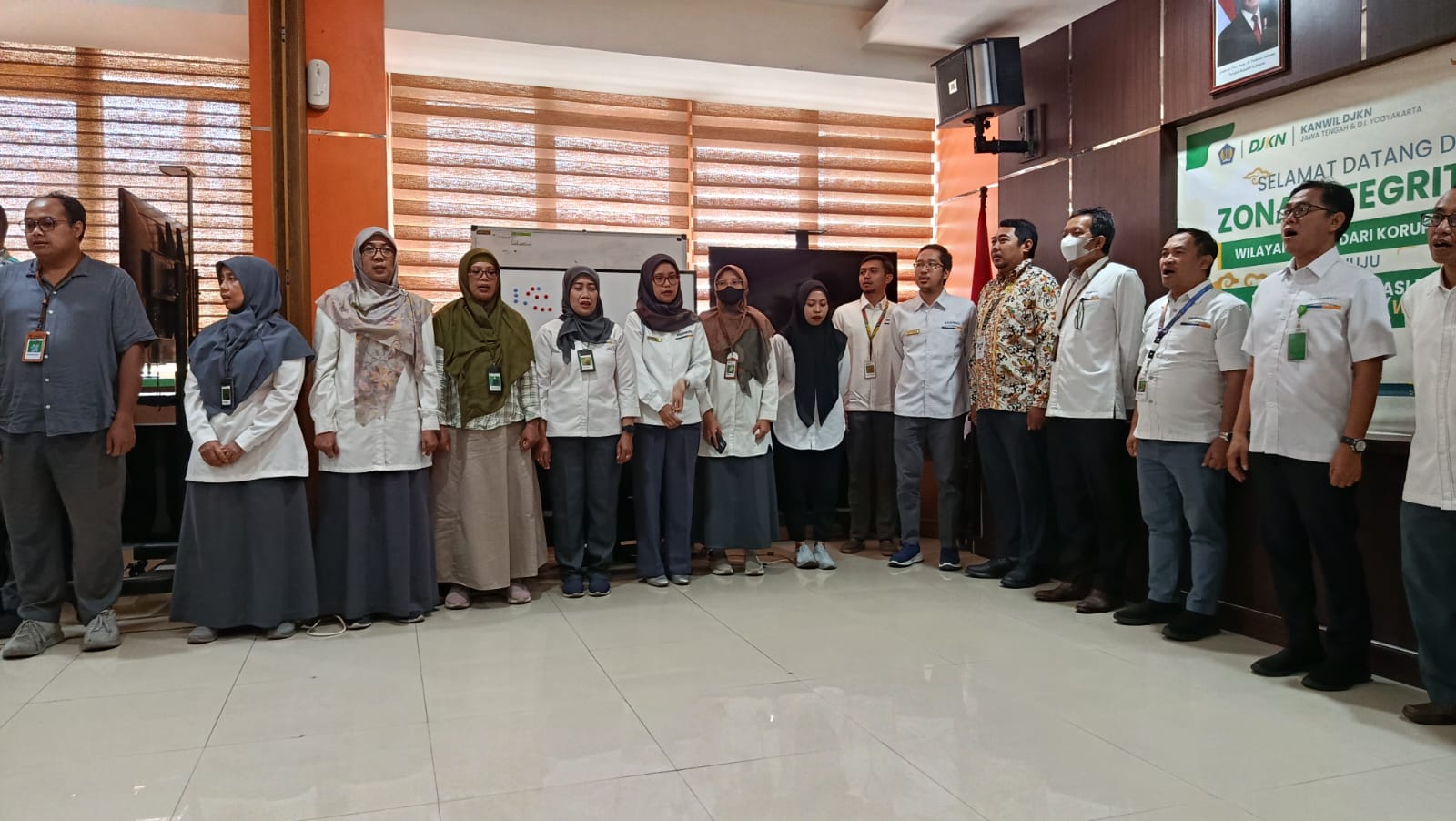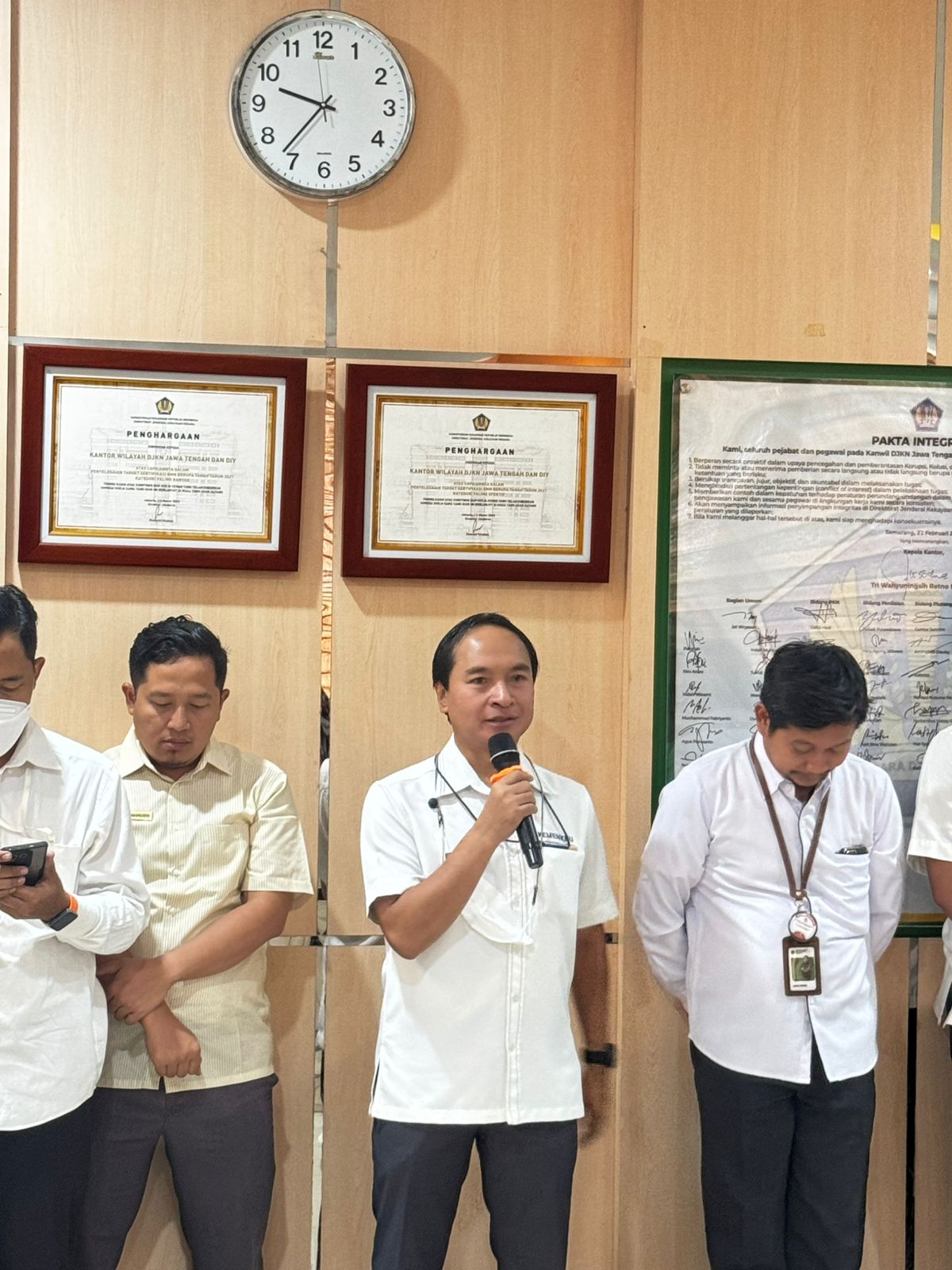 Semarang (29/09) - Mengawali pekan ke V bulan September SeSrawungan edisi ke 14 hadir kembali sebagai sarana untuk mempererat keakraban para pejabat dan pegawai dilingkungan Kanwil DJKN Jawa Tengah dan D.I. Yogyakarta. Pada edisi kali ini Anggana Bayu Aji bertugas sebagai pembawa acara. Diawali dengan Doa bersama dan dilanjutkan dengan menyanyikan lagu kebangsaan Indonesia raya dan Mars Keuangan, selanjutnya untuk membakar semangat para pegawai Gede Sindu Putra Wijaksana mengajak untuk meneriakkan yel-yel Kanwil DJKN Jawa Tengah dan D.I. Yogyakarta. Untuk memperkuat budaya organisasi guna mendorong peningkatan kinerja pegawai dalam mendukung pelaksanaan tugas dan fungsi Kementerian Keuangan, Lintang Fajar Aditama mengajak para pejabat dan pegawai untuk membacakan Nilai-nilai Kementerian Keuangan dan Budaya Kerja Kementerian Keuangan.