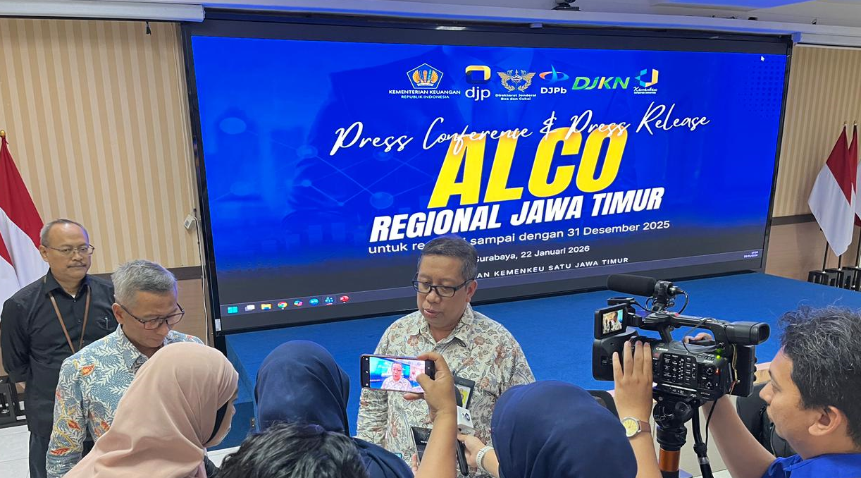 Perwakilan Kementerian Keuangan Provinsi Jawa Timur menyelenggarakan Press Conference dan Press Release ALCo Regional Jawa Timur atas realisasi hingga 31 Desember 2025. Kegiatan ini dilaksanakan pada tanggal 22 Januari 2026 secara hybrid bertempat di Aula Majapahit, Gedung Keuangan Negara Surabaya I yang dihadiri oleh jajaran Perwakilan Kementerian Keuangan Jawa Timur serta insan media.