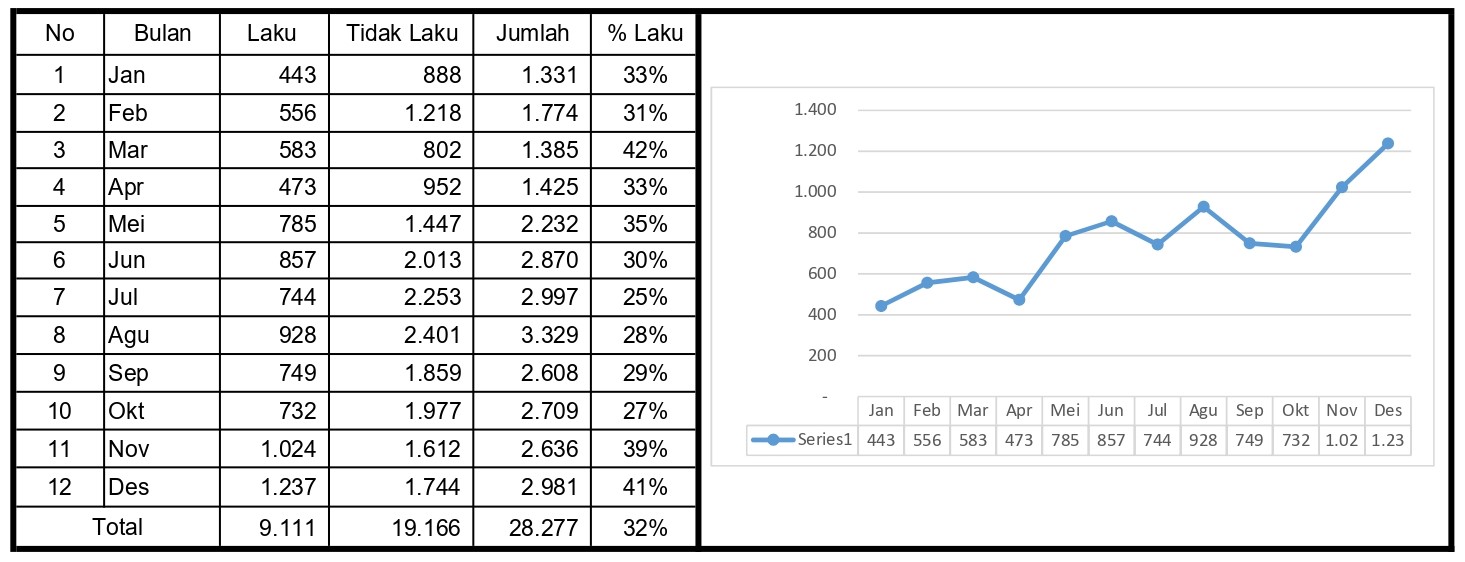 lelang tidak laku (Tidak Ada Peminat/TAP). Dengan demikian rata-rata tingkat keterlakuan lot