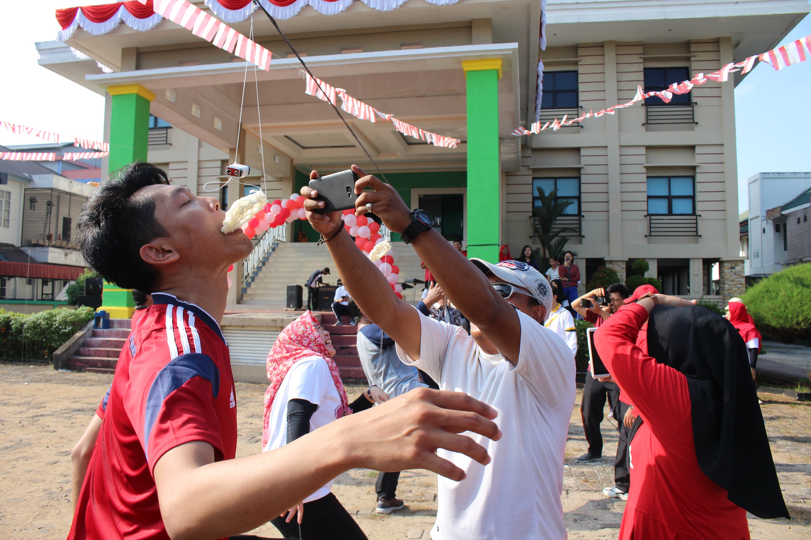 lomba makan kerupuk yang diikuti oleh perwakilan dari masing masing bidang dan