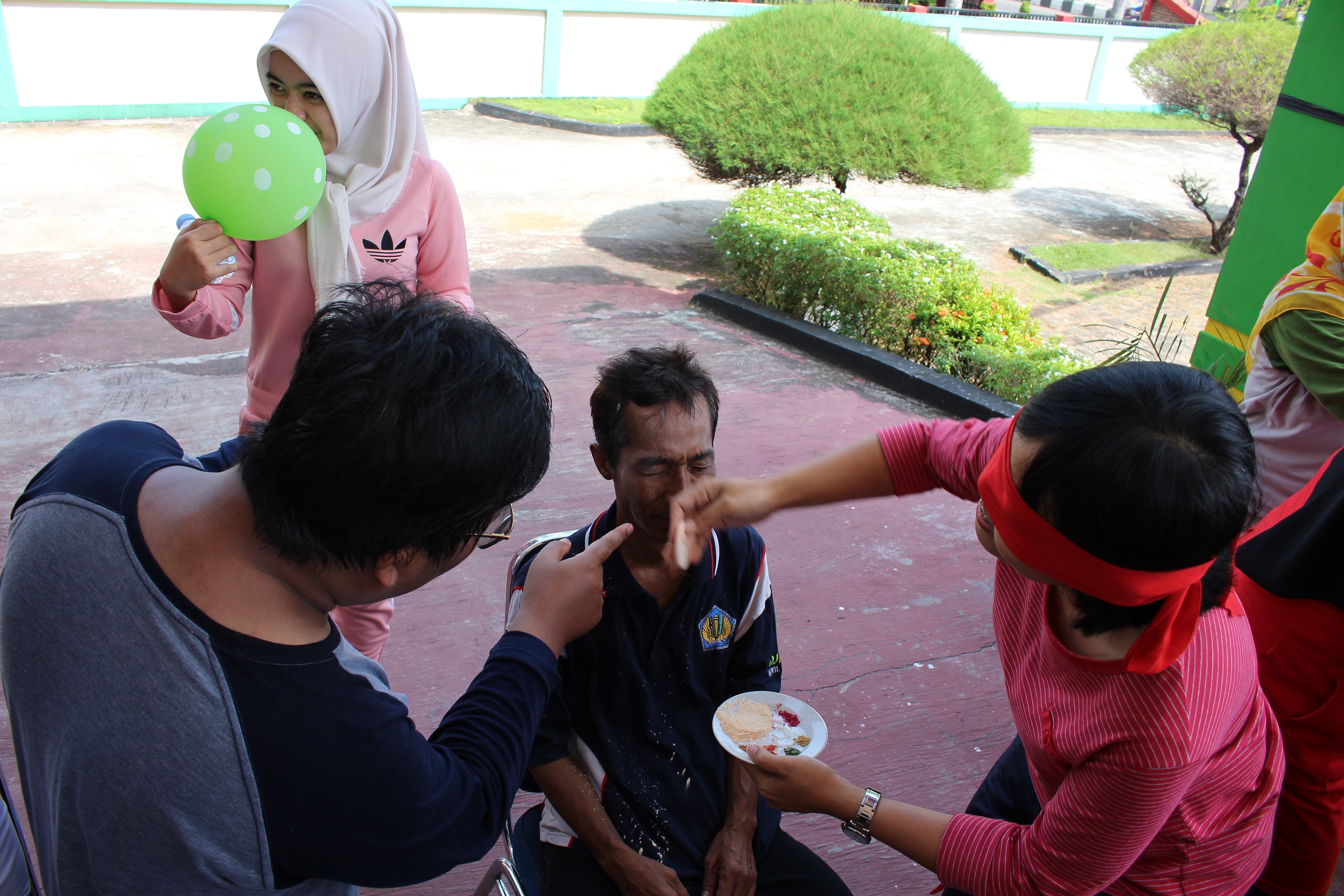 Keseruan terjadi dikarenakan peserta matanya ditutup dan hanya