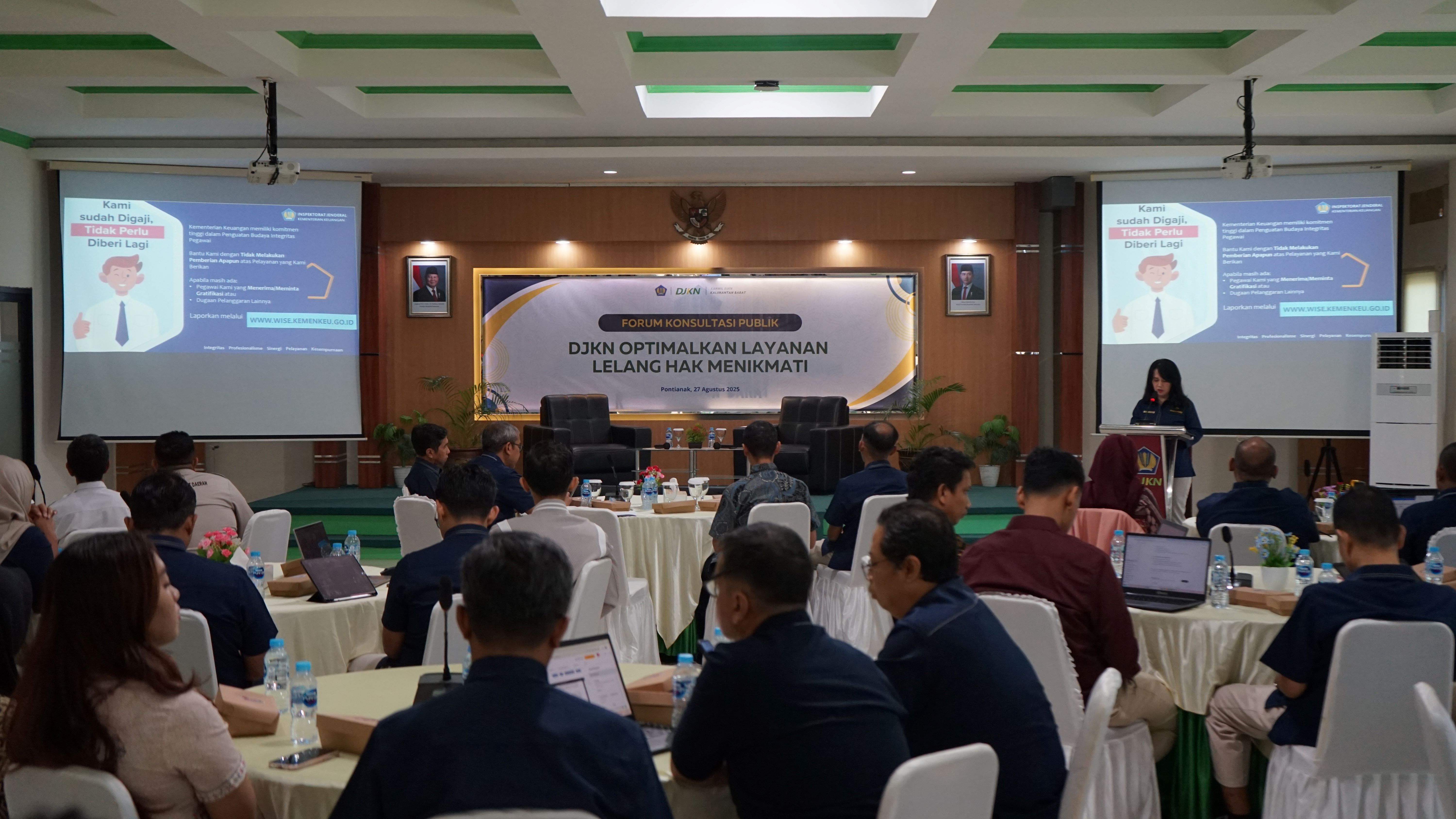 Pontianak — Kantor Wilayah Direktorat Jenderal Kekayaan Negara (DJKN) Kalimantan Barat menyelenggarakan Forum Konsultasi Publik (FKP) Tahun 2025 dengan tema “DJKN Optimalkan Layanan Lelang Hak Menikmati” pada Rabu (27/8) di Aula Kanwil DJKN Kalimantan Barat.