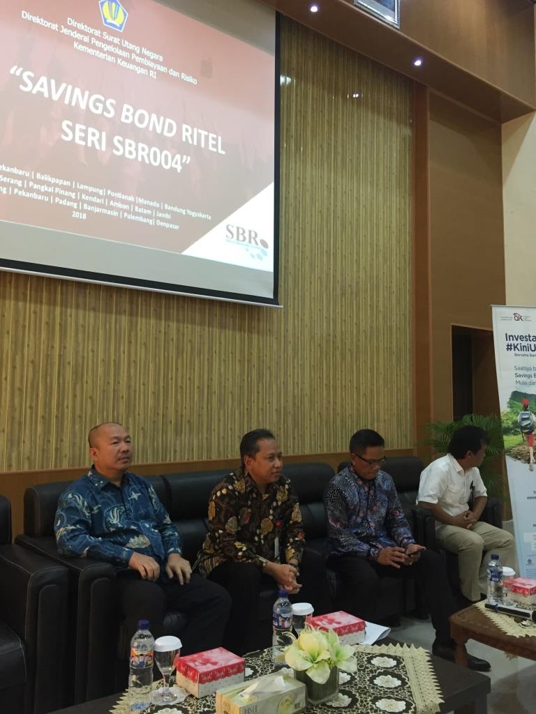 Acara seminar Savings Bond Ritel dibuka oleh Bapak Joko Prihanto Kepala Kanwil DJKN Kalimantan Selatan dan Tengah selaku Kepala Perwakilan Kementerian Keuangan Provinsi Kalimantan Selatan. Acara ini dilaksanakan pada hari Kamis 30 Agustus 2018, di Aula pertemuan Kanwil DJKN Kalimantan Selatan dan Tengah (Jl. Ahmad Yani Km 29,5 Banjarbaru), serta dihadiri oleh sekitar 120 pegawai dan pejabat eselon di lingkungan Kementerian Keuangan Provinsi Kalimantan Selatan yang berasal dari Ditjen Pajak, Ditjen Bea dan Cukai, Ditjen Perbendaharaan, dan Ditjen Kekayaan Negara selaku tuan rumah.