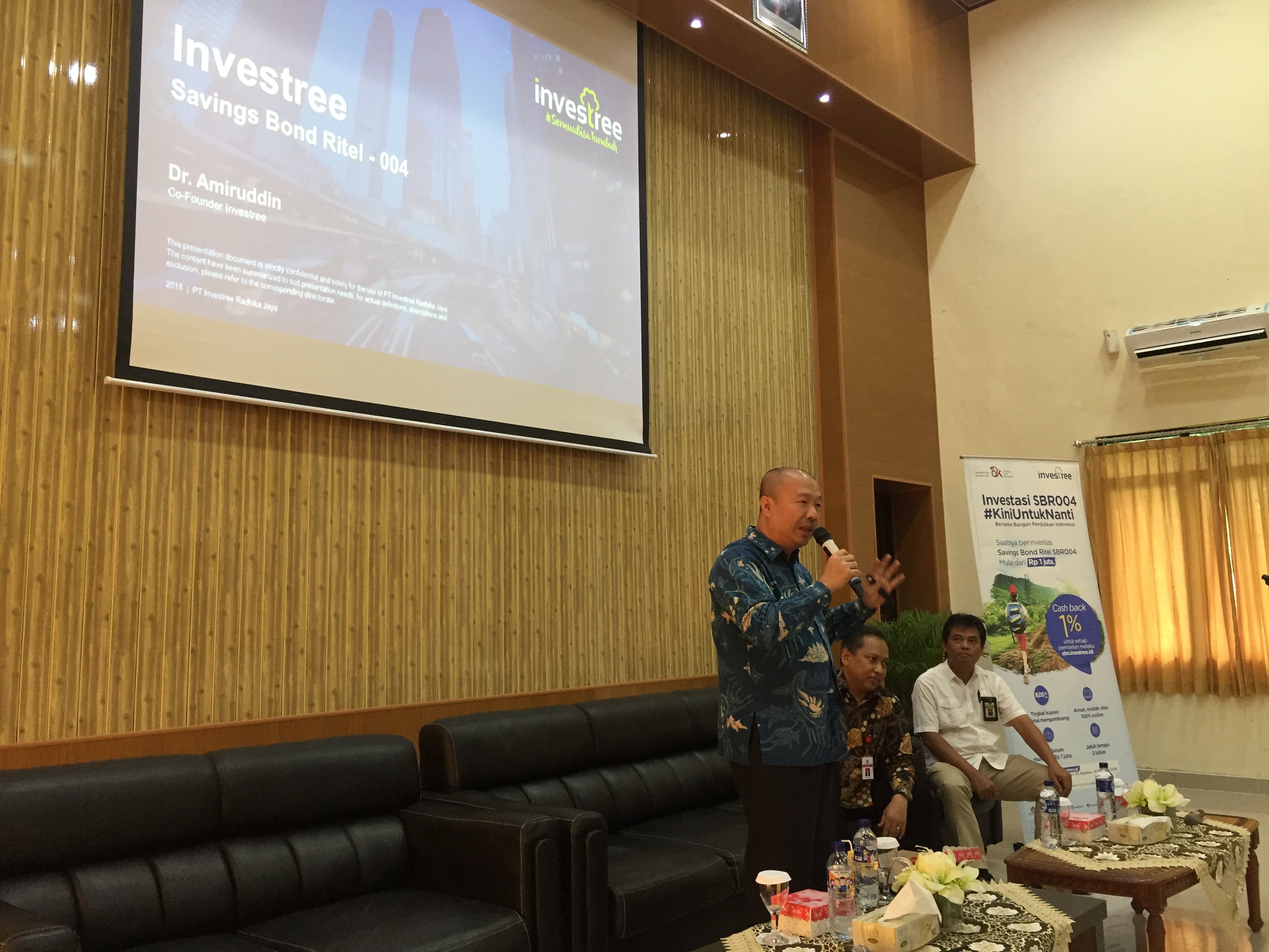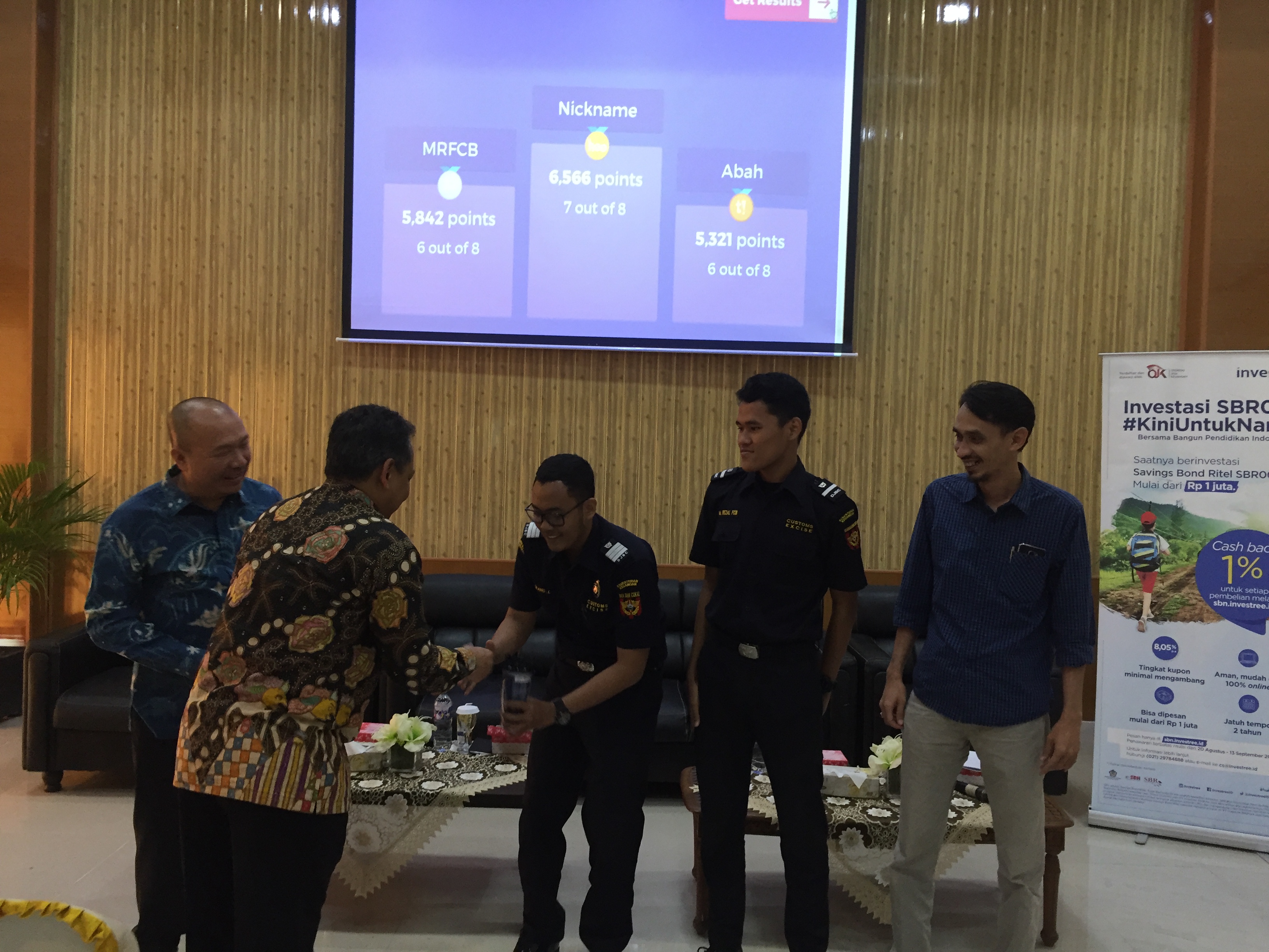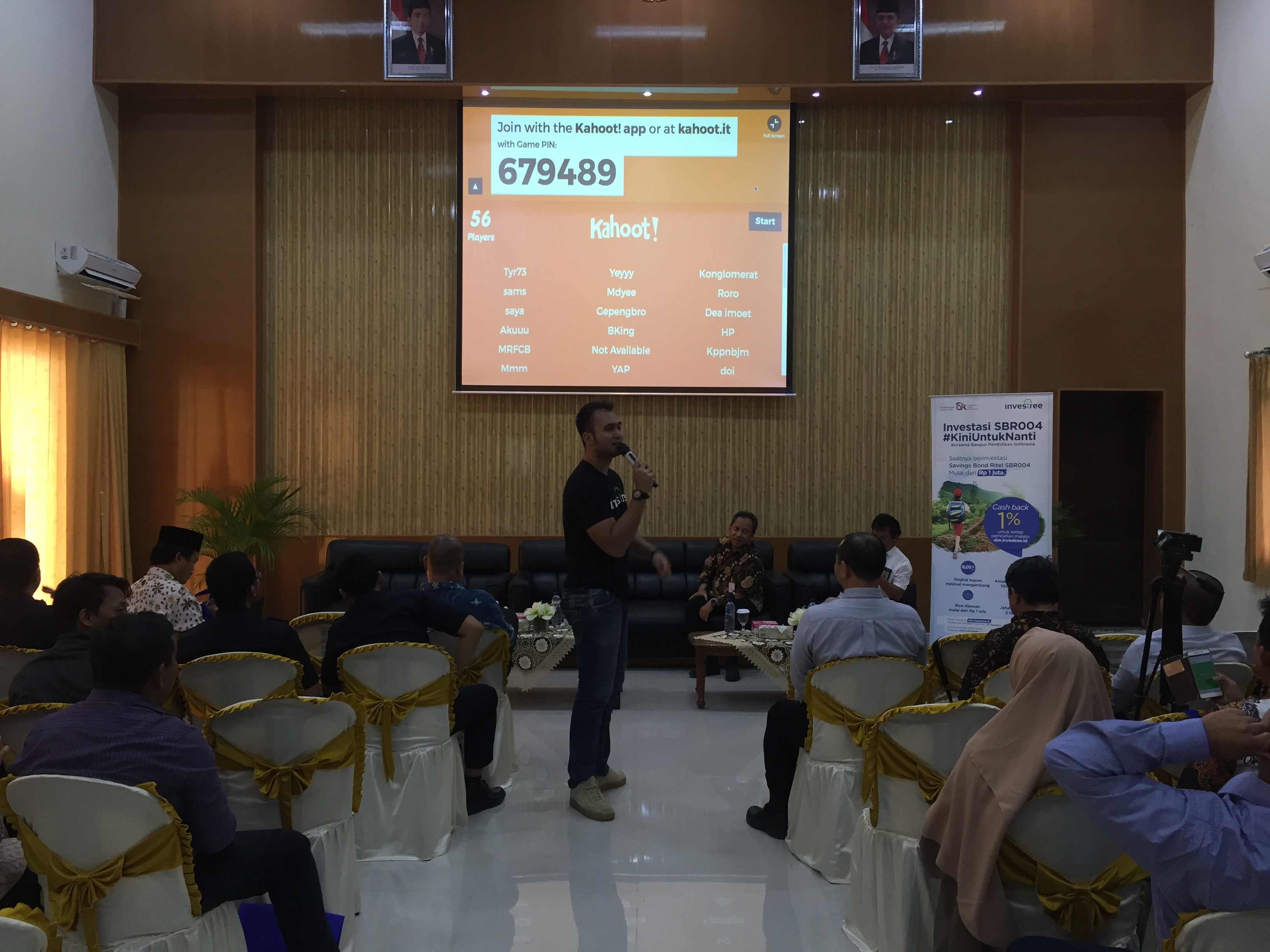 Pembicara pada acara sosialisasi SBR004 ini adalah Bapak Sandi Arifianto selaku Kepala Seksi Perencanaan Transaksi Surat Utang Negara dan Derivatif, DJPPR yang membawakan tentang SBR004 dan Dr. Amirudin dari Investree yang menyampaikan kondisi investasi dan kemudahan dalam investasi SBR004. Turut memeriahkan dalam acara ini adalah mas Hendi dari Investree yang membawakan quiz yang menarik sebagai ice breaking. Quiz diikuti oleh sekitar 60 orang peserta yang mana peserta quiz diminta menjawab delapan pertanyaan sekitar wawasan kebangsaan. Terdapat tiga pemenang quiz dengan juara 1 dan 2 adalah pegawai Ditjen Bea dan Cukai, serta juara ke-3 diperoleh pegawai DJKN.
