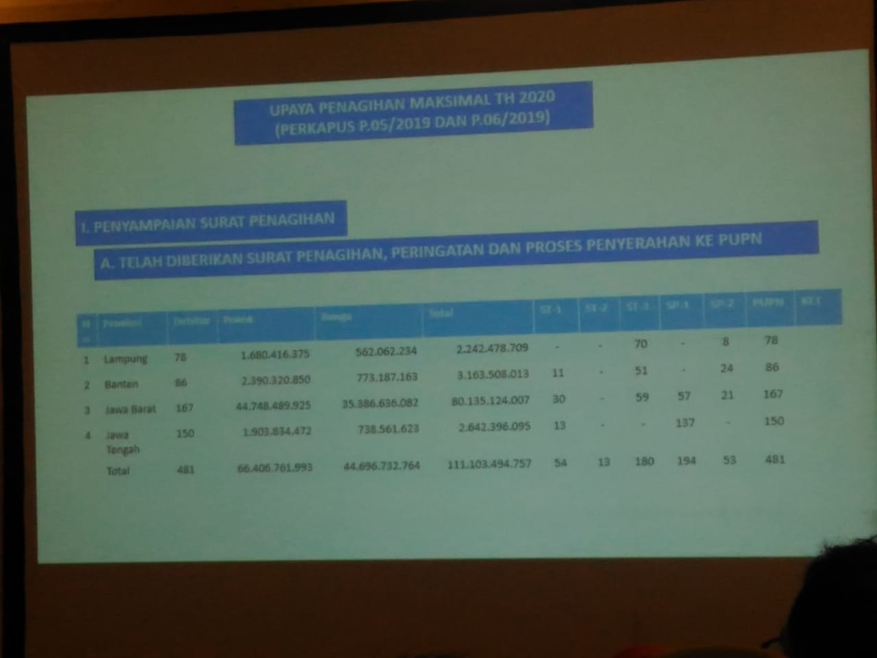 78 berkas Piutang Negara dengan potensi total Piutang Negara kurang lebih sebanyak