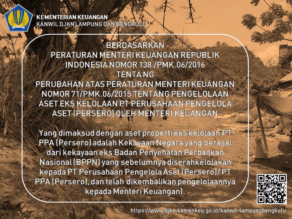 Pemasangan papan nama dimaksud dilakukan dengan mengacu kepada Keputusan Dirjen KN Nomor 171/KN/2017 tentang Pedoman Teknis Penatausahaan, Pemeliharaan, dan Pengamanan Aset Eks. BPPN, Eks. Kelolaan PT PPA (Persero), dan Eks. BDL.