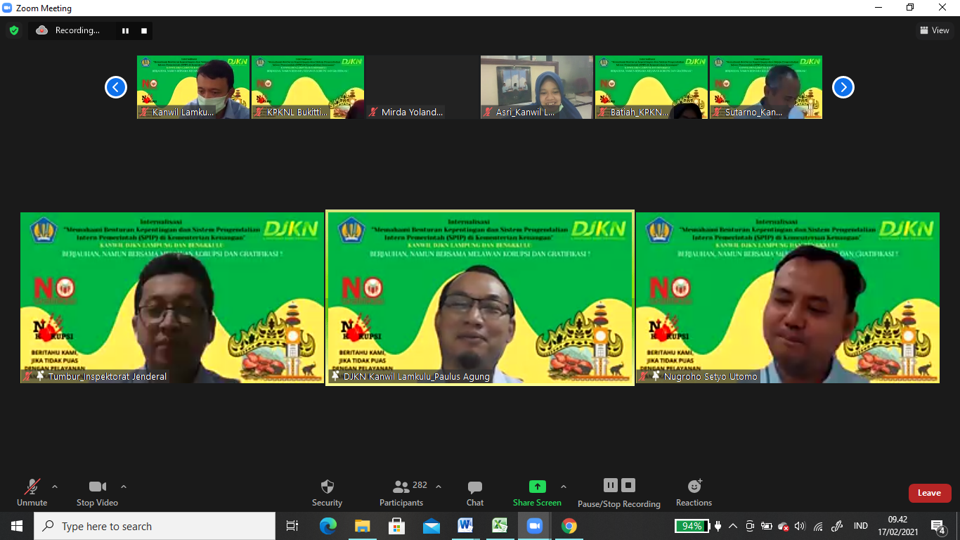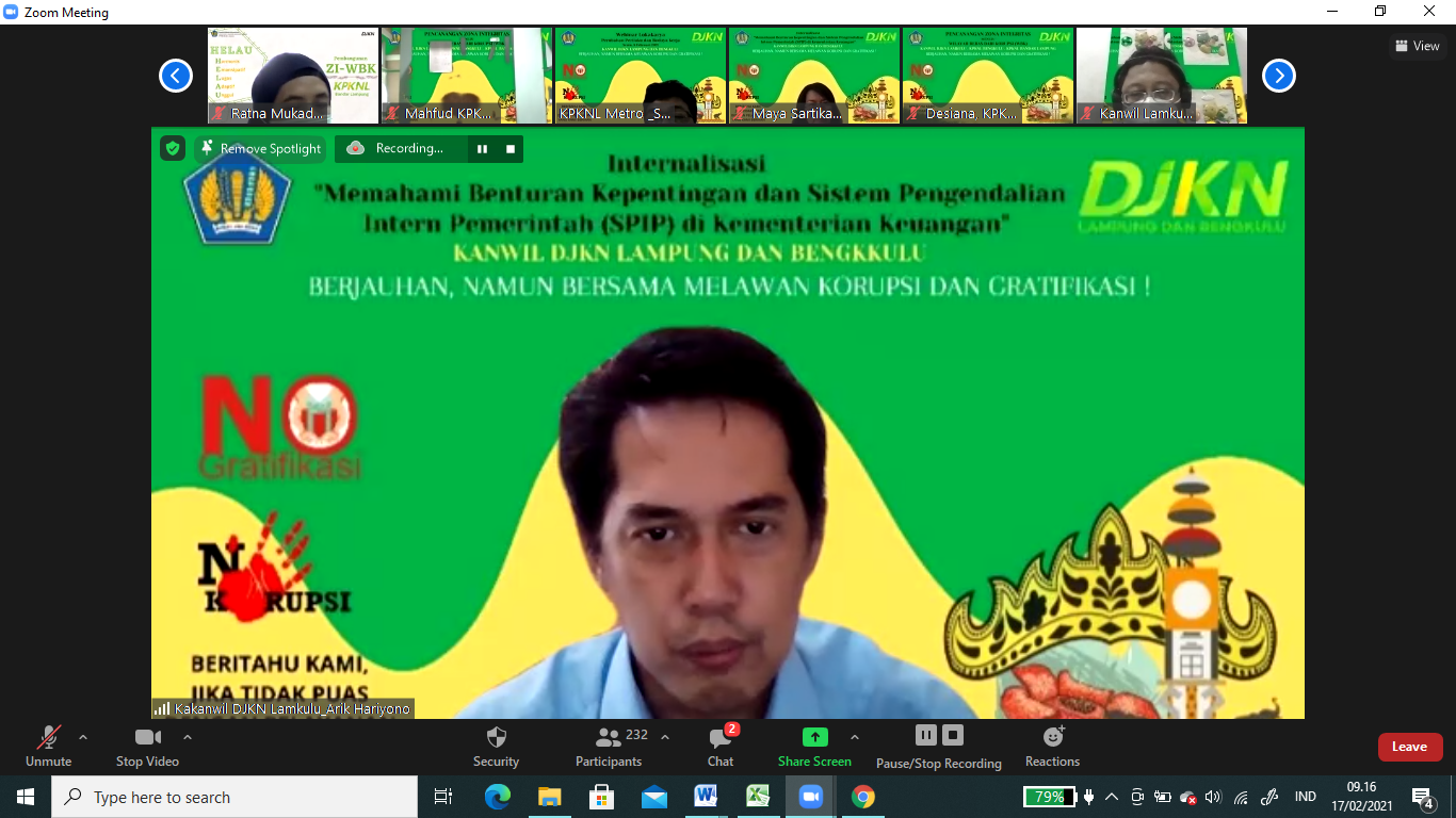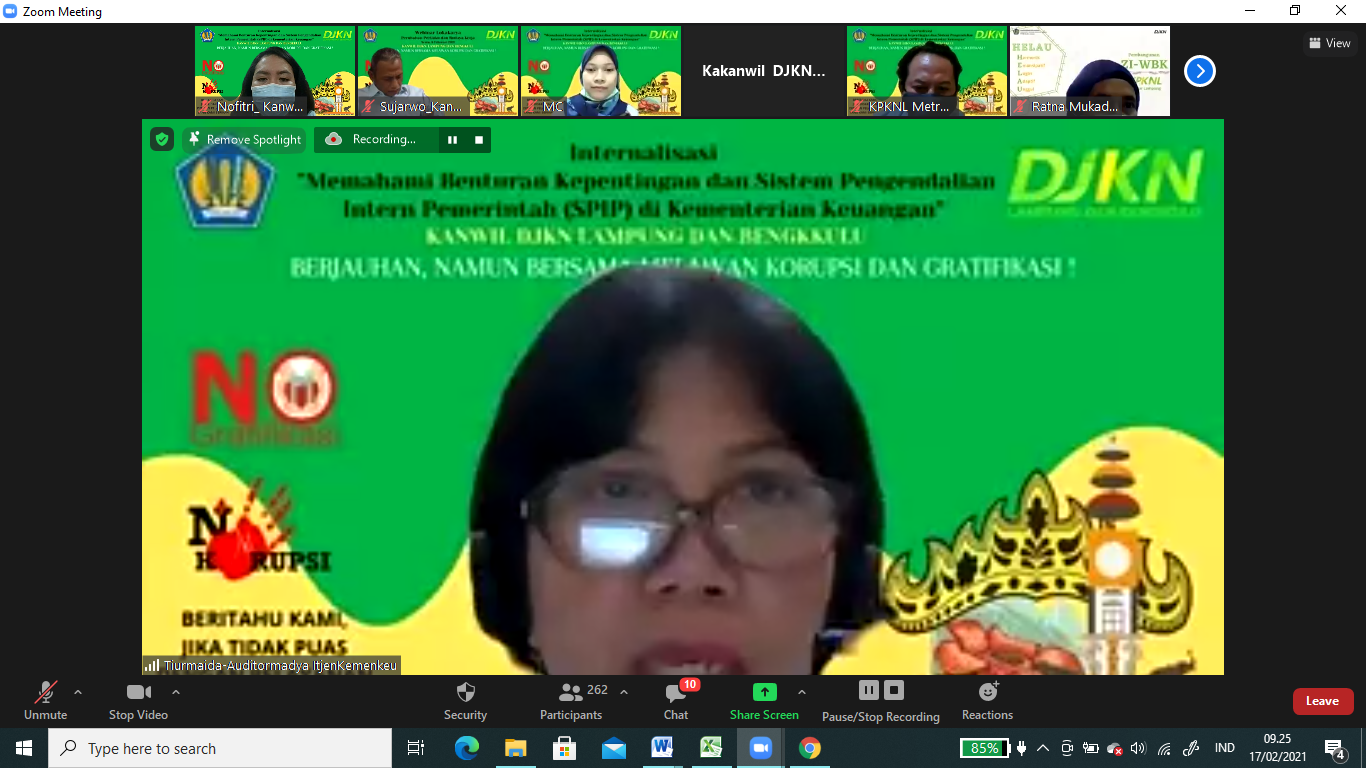 Wilayah DJKN Lampung dan Bengkulu menyelenggarakan “Internalisasi Memahami Sistem Pengendalian Intern Pemerintah