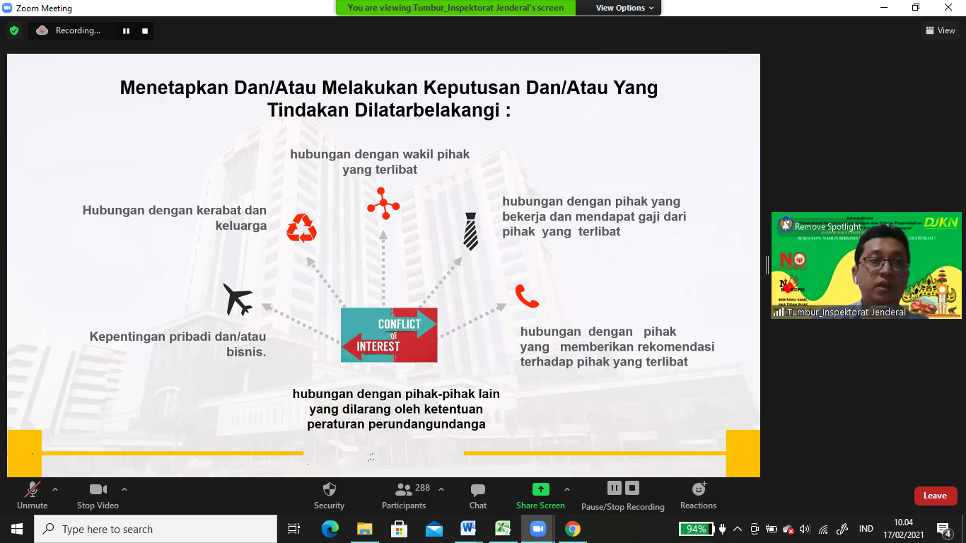 Kementerian Keuangan dengan memaparkan materi mengenai Benturan Kepentingan. Dalam pemaparannya