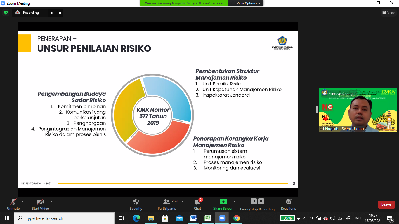 internalisasi dilanjutkan dengan pemaparan oleh narasumber pertama yaitu Nugroho Setyo Utomo, seorang Auditor Muda, Inspektorat Jenderal