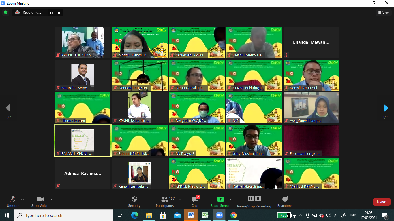 Acara diselenggarakan secara daring melalui zoom meeting yang dihadiri oleh sekitar 280 orang peserta pegawai DJKN diseluruh Indonesia. Internalisasi dibuka oleh