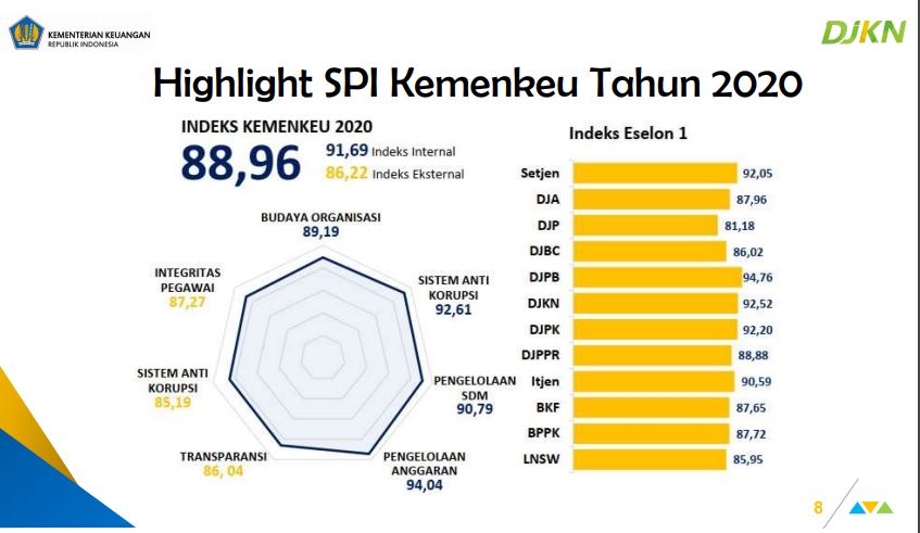 DJKN pada tahun 2020 mengalami peningkatan menjadi 92,52 dari hasil SPI tahun