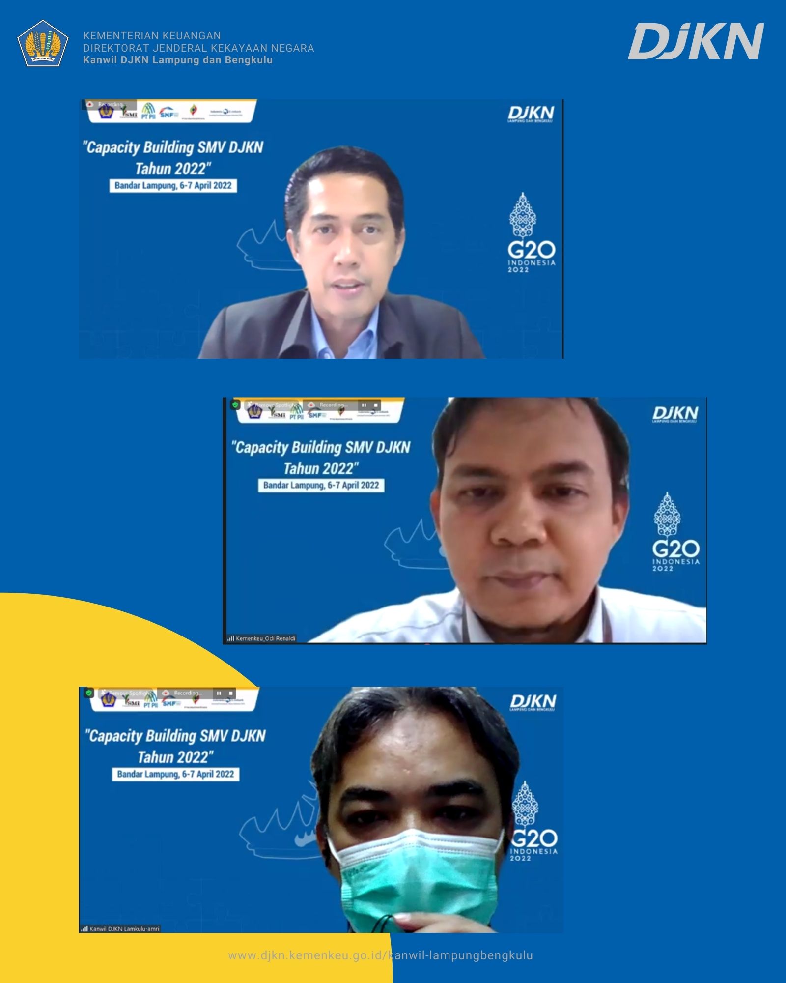 Kepala Kanwil DJKN Lampung dan Bengkulu, Arik Hariyono, dalam sambutannya menyampaikan bahwa perlu dilakukan penguatan peran Kantor Wilayah DJKN sebagai Regional Chief Economist (RCE). Oleh karena itu, diperlukan pemahaman yang baik mengenai SMV untuk selanjutnya disampaikan secara lebih luas baik kepada Pemerintah Daerah maupun kepada masyarakat.