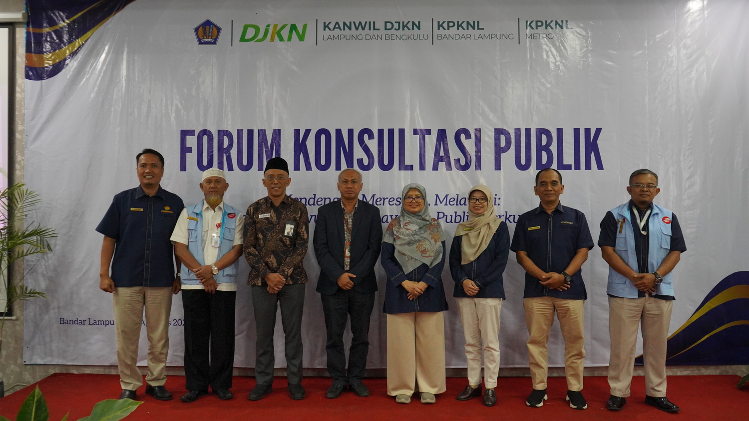 Bandar Lampung – Rabu (27/08) Kantor Wilayah Direktorat Jenderal Kekayaan Negara (DJKN) Lampung dan Bengkulu, bersama dengan Kantor Pelayanan Kekayaan Negara dan Lelang (KPKNL) Bandar Lampung serta KPKNL Metro, menyelenggarakan Forum Konsultasi Publik dengan tema "Mendengar, Merespon, dan Melayani: Transformasi Layanan Publik yang Partisipatif dan Berintegritas." Acara ini berlangsung di Aula KPKNL Bandar Lampung, yang terletak di Jalan Basuki Rahmat No.12, Kelurahan Talang, Kecamatan Telukbetung Selatan, Kota Bandar Lampung.