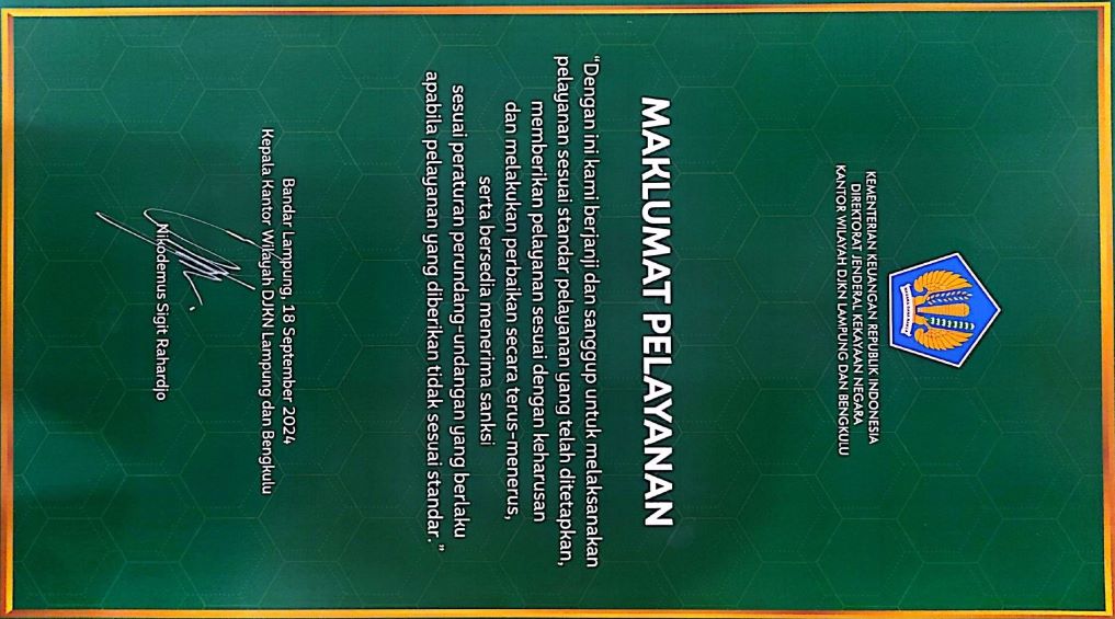 MAKLUMAT PELAYANAN KANTOR WILAYAH DJKN LAMPUNG DAN BENGKULU